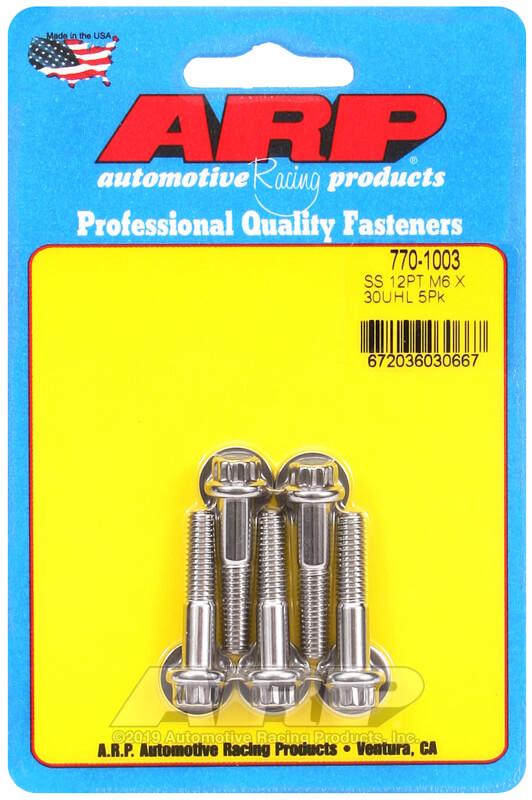 ARP stainless steel bolts are rated at 170,000 psi to provide a substantial extra margin of safety over Grade 8 and other hardware. They're available in hex head or 12-point styles and a variety of lengths and sizes for use on cars, boats, trailers, and more. Stock up on these truly maintenance-free bolts so you'll have them when the need arises. Order the ARP stainless steel bolts designed to fit your application.