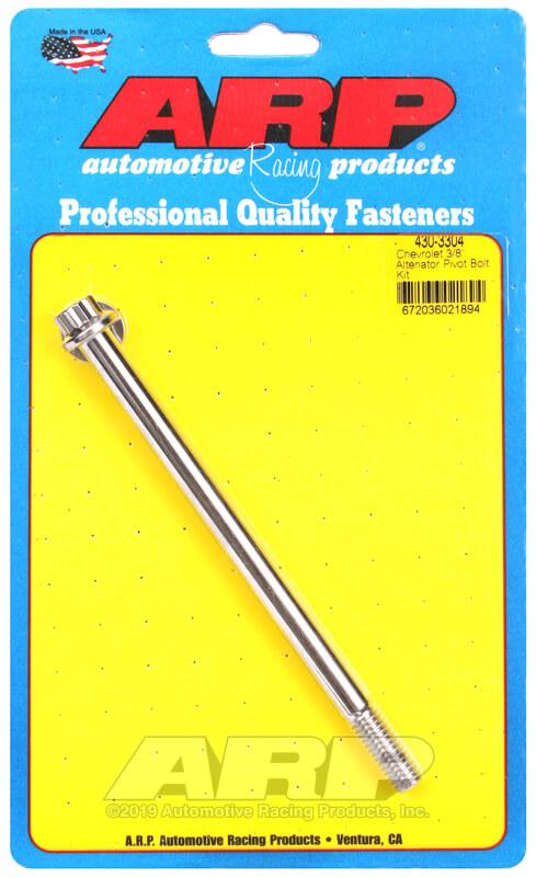 ARP alternator bracket bolt kits are designed to mount stock or aftermarket alternator brackets. They are available in polished stainless steel or black oxide steel and include necessary washers and nuts, where applicable.