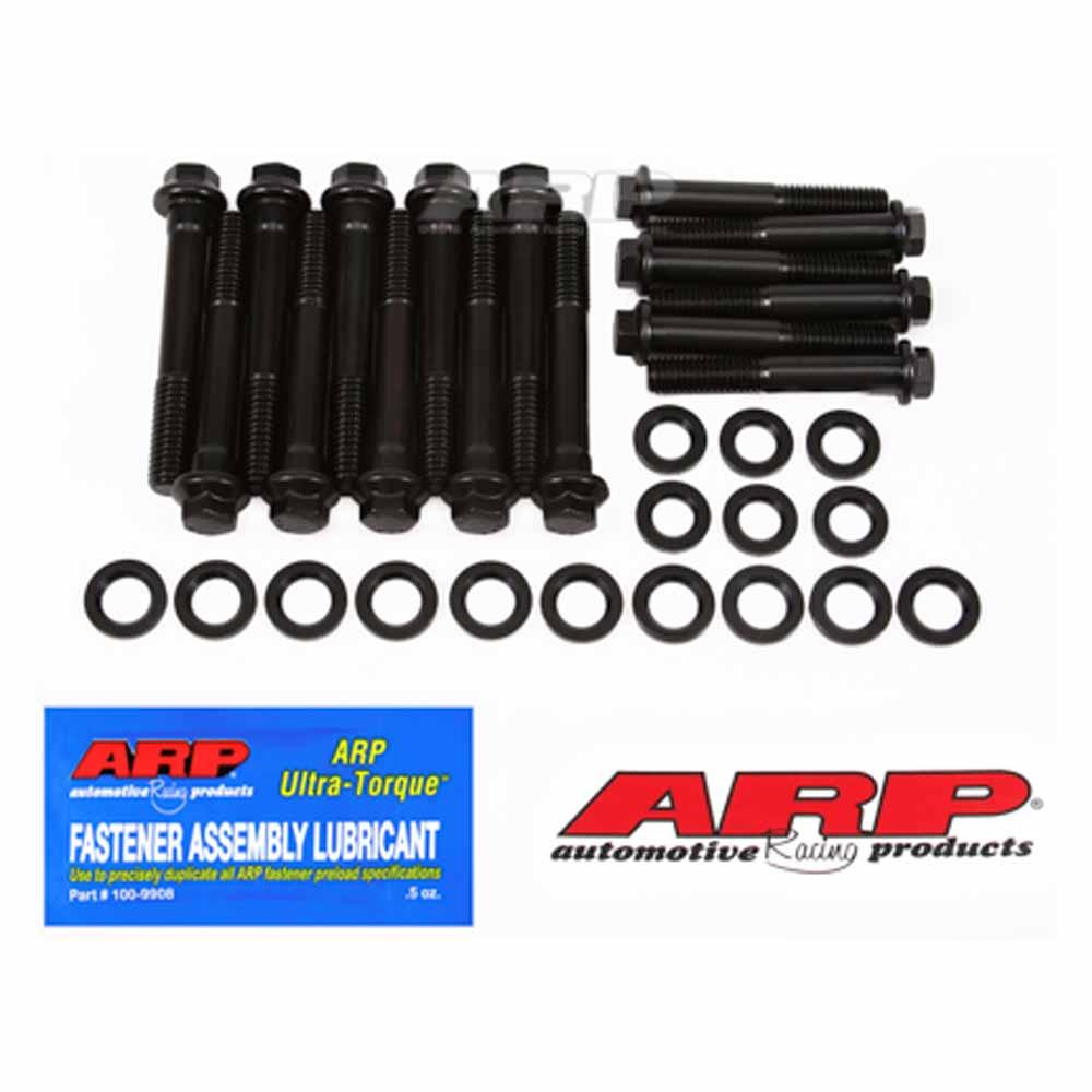 ARP Pro Series main bolts are application-specific and rated at 190,000 psi. Designed to meet the exacting standards and demands of professional engine builders, ARP bolts are forged from 8740 chromoly steel and feature a reduced wrenching head, large underhead radius, and rolled threads for the utmost in reliability. The threads are rolled after heat-treating which gives them about 2,000 percent better fatigue strength than most main bolts that are threaded prior to heat-treating. Hardened parallel-ground washers are included with each kit.