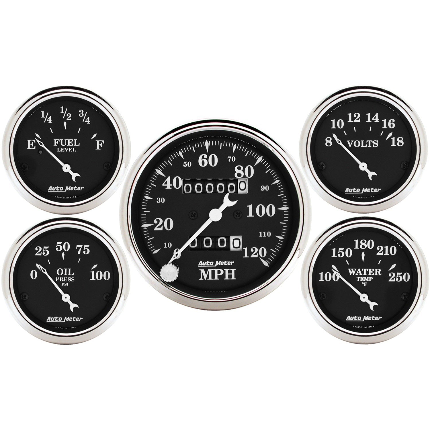 AutoMeter Auto Meter Gauge Kit 5 pc. 3 1/8in and 2 1/16in Mechanical Speedometer Old Tyme Black (1708)