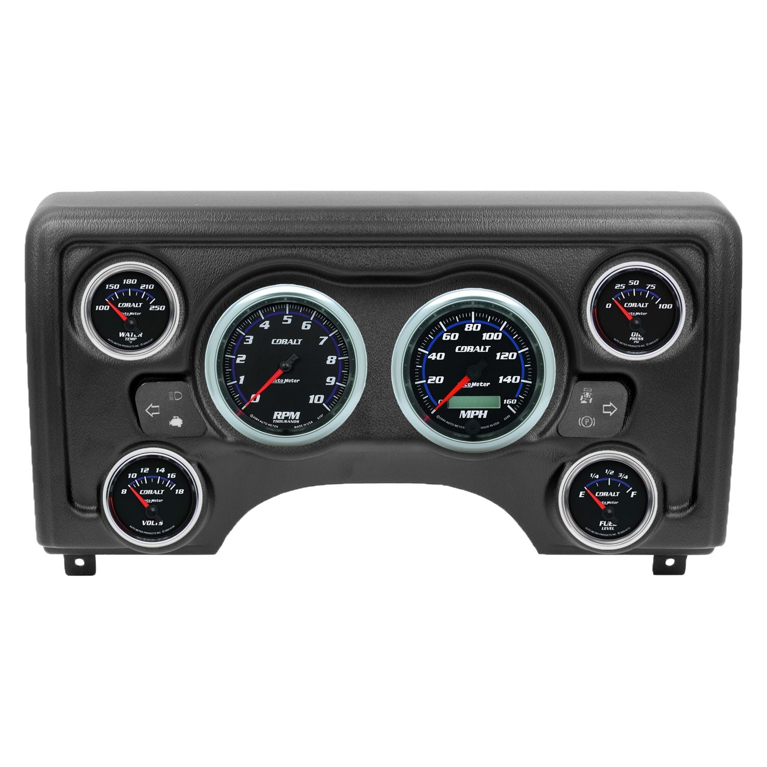 - Includes 3-3/8" Cobalt electric speedometer & tachometer and 2-1/16" electric, water temperature, oil pressure, fuel level, and voltmeter