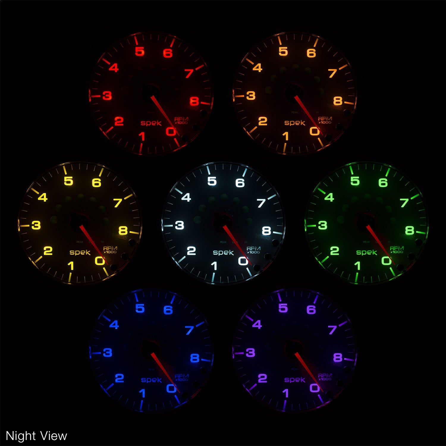 - 7 color user-selectable background illuminations (red, blue, green, white, yellow, orange, and violet) with adjustable brightness for day and night - with independent dimming of dial and pointer