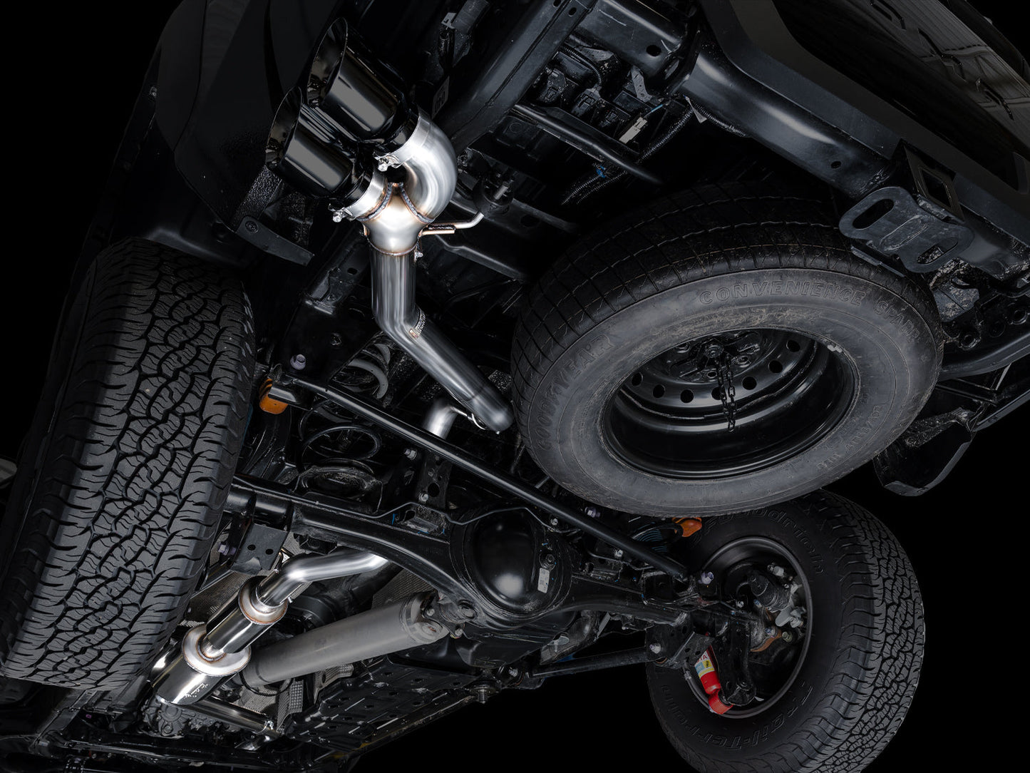 - 50-state emissions-compliant 3" catback configuration available with high-clearance BashGuard™ or dual 4.5" tips