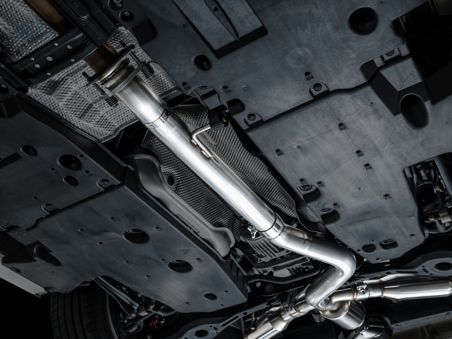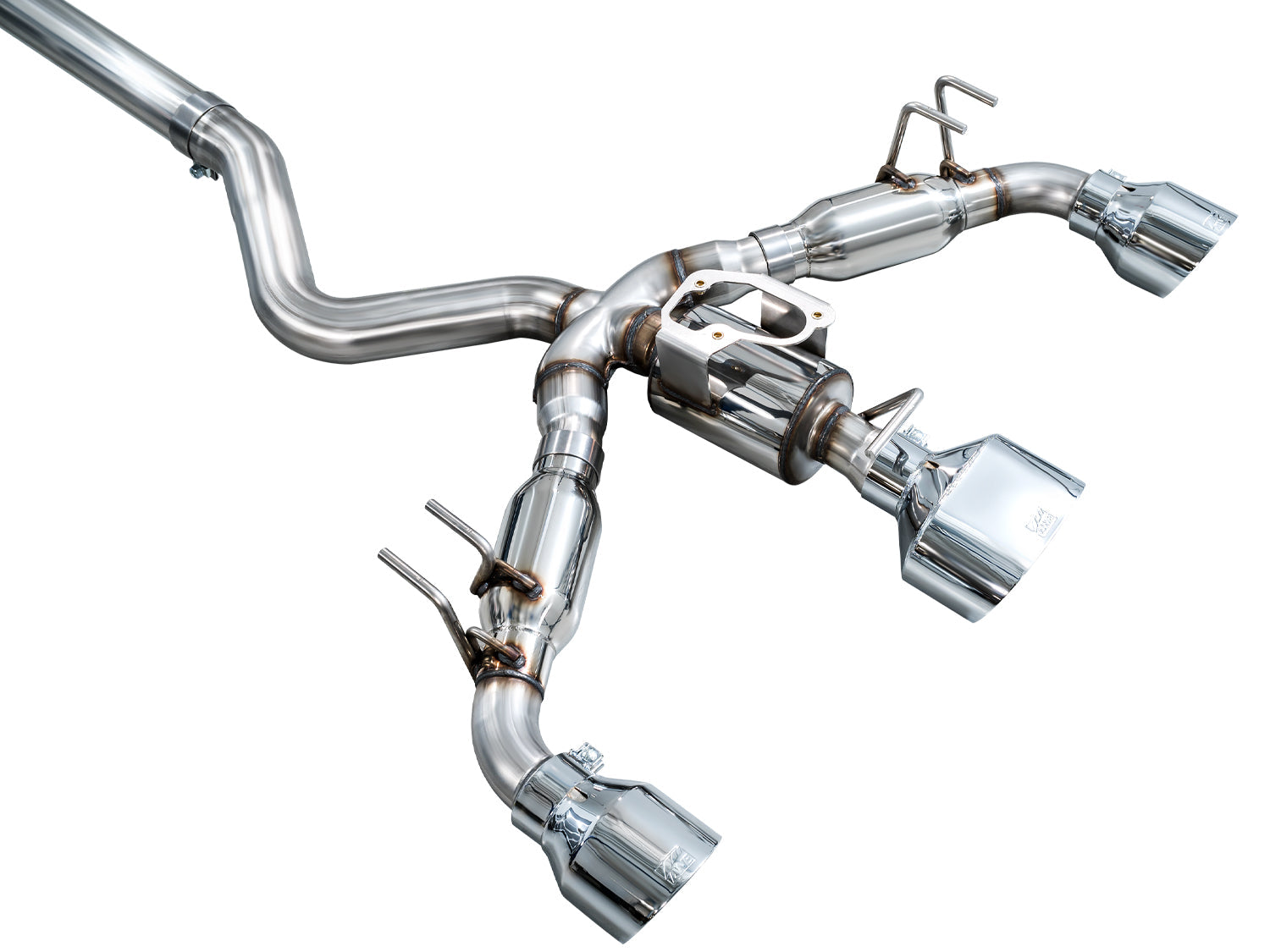 For those who like their volume like their speed (and want to feel the raw nature of the GRC’s potent 3-cylinder at all speeds) the Track Edition features a non-resonated mid-section (i.e. no 180 Technology®). It’s even louder (in & out) than the Touring Edition, while shaving weight and cost. This version is known to get rowdy in mid-range acceleration/deceleration and cruising, and may be too much for some. For this reason, the Track Edition cannot be returned for sound reasons--you've been warned! The Track Edition boasts a 3" T304L stainless steel downpipe-back configuration that brings out an incredibly rowdy and powerful soundtrack that is nothing short of attention-grabbing. AWE designed three, perfectly fitting (and larger) tips for the GRC: one bespoke 4.5" x 8" oval (double-walled, slash-cut tip and stamped with the AWE logo) in the center, and two 5" double-walled, slash-cut tips left and right. No forced block-off plates or quad setups here - just pure GR look, as intended. When it comes to valves, the rumors are true - they don't matter once you remove the backpressure issues of the stock configuration (and you can't open the valve yourself anyway). So we decided to delete them, save weight, drop price, and make the best sounding exhaust available for the GRC. And in case you're wondering, there's a tailored mount right on the exhaust so you have a solid location to bolt up your factory valve after removing the unnecessary organ. All this supported by AWE’s Perfect Fitment Guarantee, No CEL Guarantee, and Lifetime Warranty.