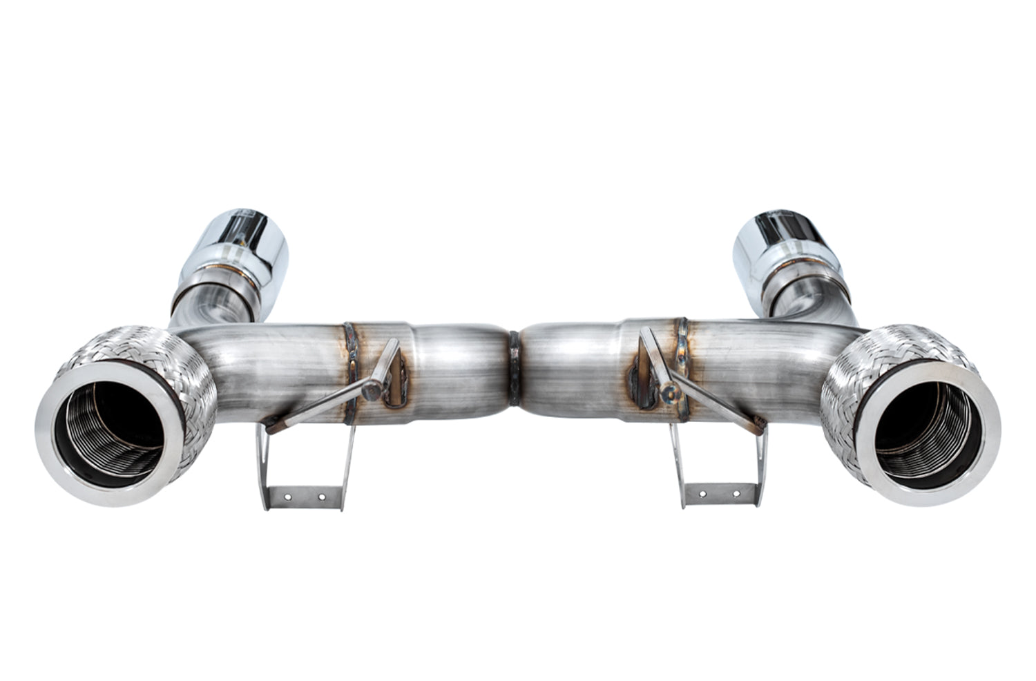 A bespoke X-pipe configuration engineered for the high revving V8 provides a sought-after, smooth and sophisticated exotic tone worthy of the 720S while unlocking significant mid range and top end power gains when paired to the Performance Downpipes. Robust articulating stainless steel flex sections with interlocking liners provide a range of movement to combat torque flex without stress. Bringing up the rear are proper length tip outlets to ensure equal tip alignment under hard usage and steel expansion, secured by factory-correct, rigid mounting points. This edition of the AWE Performance Exhaust for the 720 features 102mm double walled Chrome Silver tips with the AWE logo...so they know what team you're on.