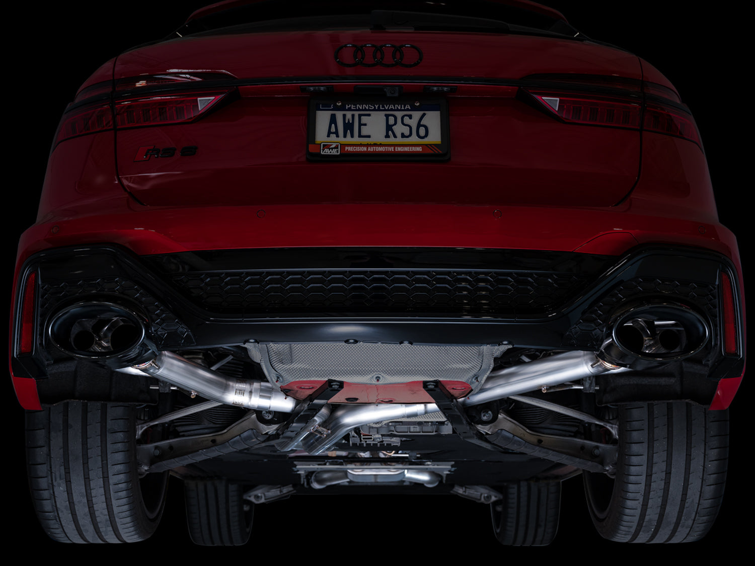 The SwitchPath™ Exhaust comprises 3-inch U.S.-sourced T304L stainless steel featuring a bespoke, straight-through center resonator featuring AWE’s proprietary drone-canceling solution, 180 Technology®, tuned specifically for the 4.0TT. Maintaining and utilizing the factory valve behavior, SwitchPath™ tech obeys orders given via the MMI and Drive Select to determine its mood just as the stock exhaust would. When the valves are closed, the SwitchPath™ Exhaust produces a sophisticated soundtrack. At cruising speeds, interior acoustics are close to stock with no drone thanks to the 180 Technology® resonator. SwitchPath™ tech also responds perfectly to Drive Select, so if you drop the hammer while cruising, expect it to behave just like factory. Open the valves and the 4.0TT’s roar is uncorked. Dynamic mode achieves the ultimate contrast in behavior when compared to comfort driving modes. The exhaust note is powerful, clean, and aggressive. Thanks to the 180 Technology®-equipped resonator in the center, drone-prone frequencies are still kept in check while allowing the exhaust note to reach full aggression. Now, let's chat about tips: given the RS’ interior sound deadening, it made hearing the enhanced exhaust sound a challenge. Enter AWE’s parabolic tip design–the ReflecTip–engineered to reflect the exhaust note toward the driver. They’re 31% larger than the stock tips, fill the valance perfectly, and come standard in AWE’s signature diamond black finish. They mount independently to the bumper via included brackets allowing them to float around the outlets of the SwitchPath™ exhaust, reflect off of the inner geometry of the tips, and back towards you. AWE SwitchPath™ Exhausts come complete with two AWE parabolic tips in diamond black, two valve extension harnesses, and all required hardware and bracketry for installation. AWE's Lifetime Warranty, No CEL Light Guarantee, and Perfect Fitment Guarantee come standard.
