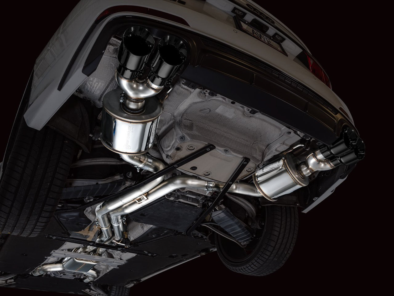 A true dual 3" T304L stainless steel configuration featuring a bespoke, straight-through center resonator specific for the 2.9TT, topped off with AWE's proprietary drone-canceling solution, 180 Technology®, in the rear. The result is a menacing, aggressive soundtrack throughout the range with a drone-free cabin experience under cruising conditions. This exhaust resides at the intersection of exotic aggression and highway comfort for the S6/S7. Quad 4.5" double-walled, slash-cut tips in your choice of chrome silver or diamond black. AWE No CEL Guarantee, Perfect Fitment Guarantee, and Lifetime Warranty come standard.