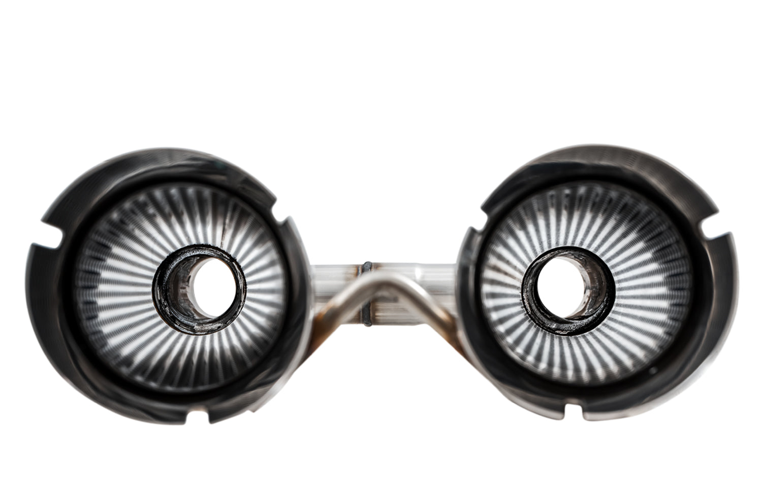 AWE's patented 180 Technology works a little something like this: As exhaust gases exit the engine and flow into an AWE 180 Technology-equipped resonator, they pass through strategically located ports, and into reflection chambers. Sound waves, carried by these exhaust gasses, bounce off the walls of the reflection chambers. Depending on the sound requirements of each vehicle, AWE acoustic engineers adjust the size and location of the ports and the chambers. By controlling the size and location of these key elements, we also control when the sound waves exit the chambers. The specific timing of when the reflected sound waves re-join the main exhaust flow creates a one-hundred-and-eighty-degree out-of-phase sound wave that cancels out problematic frequencies. AWE 180 Technology is not on a one size fits all" concept. Rather, AWE engineers design sound cancelation resonators based upon the specific acoustics generated by vehicle types, thereby ensuring perfect sound, every time. It's one of the reasons AWE exhausts have earned a reputation for the perfect tone, regardless of application. The result? The removal of unwanted tones in all AWE 180 Technology-equipped exhaust systems. The sound produced by this formula is the perfect, signature note. Unlocked performance and spot-on tone, every time.