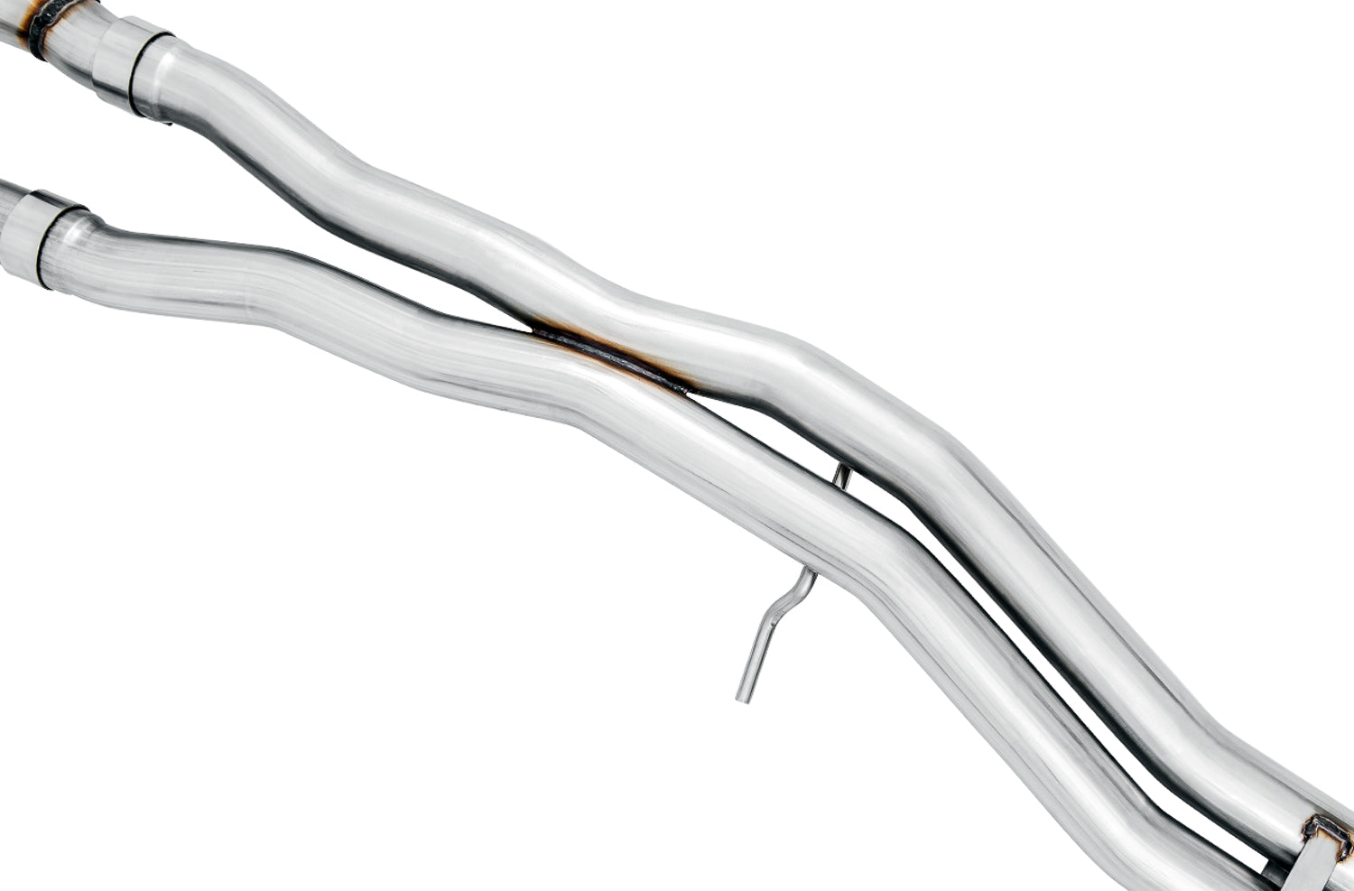 AWE's patented 180 Technology works a little something like this: As exhaust gases exit the engine and flow into an AWE 180 Technology-equipped resonator, they pass through strategically located ports, and into reflection chambers. Sound waves, carried by these exhaust gasses, bounce off the walls of the reflection chambers. Depending on the sound requirements of each vehicle, AWE acoustic engineers adjust the size and location of the ports and the chambers. By controlling the size and location of these key elements, we also control when the sound waves exit the chambers. The specific timing of when the reflected sound waves re-join the main exhaust flow creates a one-hundred-and-eighty-degree out-of-phase sound wave that cancels out problematic frequencies. AWE 180 Technology is not on a one size fits all" concept. Rather, AWE engineers design sound cancelation resonators based upon the specific acoustics generated by vehicle types, thereby ensuring perfect sound, every time. It's one of the reasons AWE exhausts have earned a reputation for the perfect tone, regardless of application. The result? The removal of unwanted tones in all AWE 180 Technology-equipped exhaust systems. The sound produced by this formula is the perfect, signature note. Unlocked performance and spot-on tone, every time.