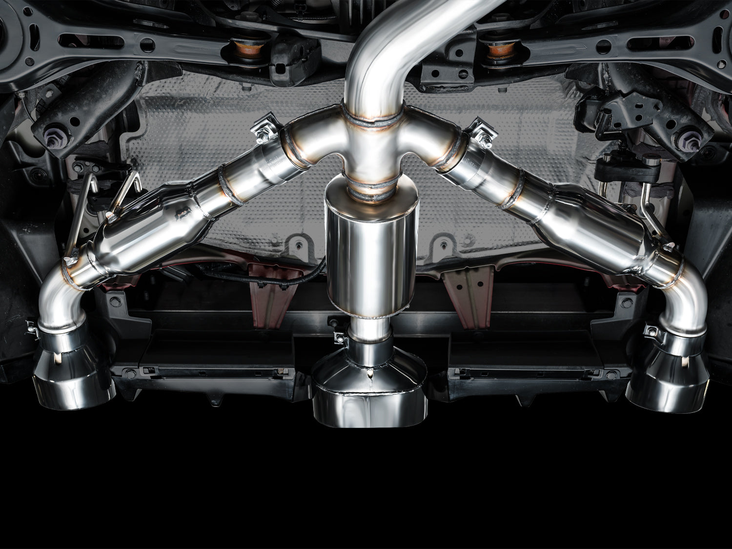Touring Edition Exhaust- 3" T304L stainless steel downpipe-back configuration providing a deep, full-bodied, powerful soundtrack that gives the GRC a complete attitude change from idle to full-throttle. Featuring AWE's patented drone-killing 180 Technology®, Touring Edition unlocks every bit of raw nature out of the 1.6L, minus the very particular frequencies that cause discomfort in the cabin (read: these particular frequencies were capable of truly breaking the threshold of the GRCs cabin structure to cause what most would perceive as drone at highways speeds). Track Edition features a non-resonated mid-section (i.e. no 180 Technology®). It's even louder (in & out), it's cost-effective, and isn't for the faint of heart-thus it cannot be returned for sound reasons-you've been warned. One bespoke 4.5" x 8" oval double-walled, slash-cut tip in the center flanked by two 5" double-walled, slash-cut tips. Nope, they're not valved: During R&D, AWE conducted a (quite painstaking) full evaluation of the factory valve and its behavior under various driving conditions to determine its reason for existing. The valve isn't controllable by the driver whatsoever-meaning regardless of the driving mode, buttons, settings, etc, there's no opening/closing the valve from within the cabin. It works directly off throttle input and only opens upon a certain breach of a threshold declared by the ECU very low in the rev range. Its sole purpose is for backpressure, and considering the factory exhaust design, flow is given priority to the center outlet. The factory rear muffler is baffled with no packing material, and only directs flow to the left and right exits when cruising at part throttle or light throttle inputs. After confirming this, and given our configurations already remove any backpressure issues organically, it would have been pointless to incorporate a valve. Instead, AWE provides an electronic valve simulator to keep the ECU satisfied while keeping vehicle operation at 100%.