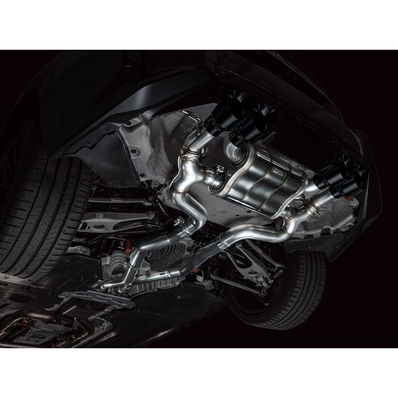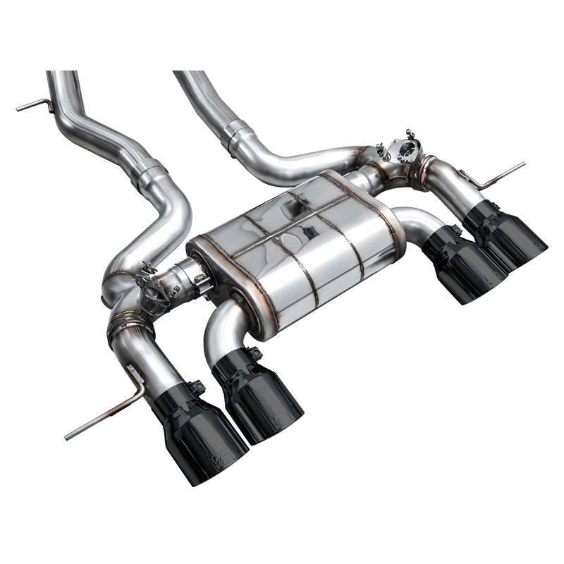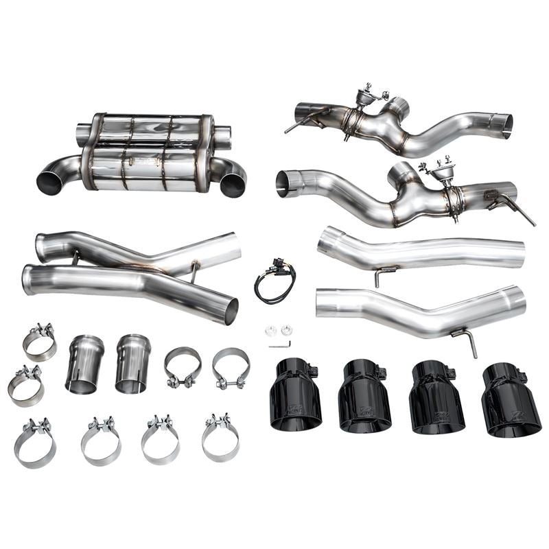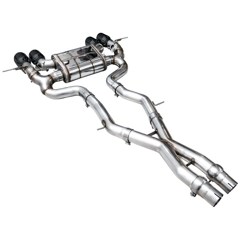 The AWE SwitchPath™ Exhaust is comprised of 3-inch U.S.-sourced T304L stainless steel, a precision x-pipe, and a valved SwitchPath™ muffler tuned for the S58. Beginning after the factory mid pipe, the precision X-pipe immediately cures the S58 of its rasp, deepening the tone before it's refined further by the bespoke SwitchPath™ muffler. When the valves are closed, the SwitchPath™ produces a refined, aggressive howl while remaining full-bodied and powerful - no congested, metallic sounds when you're on it. At cruising, interior acoustics are close to stock with no drone. AWE SwitchPath™ tech responds perfectly to the many transmission settings and shift points of the G87. Drop the hammer with the valves closed and SwitchPath™ sings a proper M anthem. If you were to leave the valves closed at all times after equipping SwitchPath™, we wouldn't blame you - it's that good? all of the time. Open the valves and the S58's roar is uncorked. Sport and Sport+ modes achieve the ultimate contrast in behavior when compared to comfort driving modes (aka valves closed). In Sport mode, the exhaust note is powerful, clean, and aggressive. In Sport+ mode, the same aggression applies? but with grin-provoking burbles. Thanks to the precision X-pipe, the rasp is still kept in check while allowing the exhaust note to reach full aggression. The AWE SwitchPath™ comes with quad 4.5" double-walled, slash-cut tips available in chrome silver or diamond black. The exhaust also features inlet adapters to mate to the factory mid-section. When pairing AWE Mid-Pipes to the SwitchPath™ or Track Edition Exhausts, these adapters are not needed. Due to varying cut points, AWE Exhausts are not guaranteed to mate with another manufacturer's mid pipes. AWE's No CEL Guarantee, Perfect Fitment Guarantee, and Lifetime Warranty come standard.
