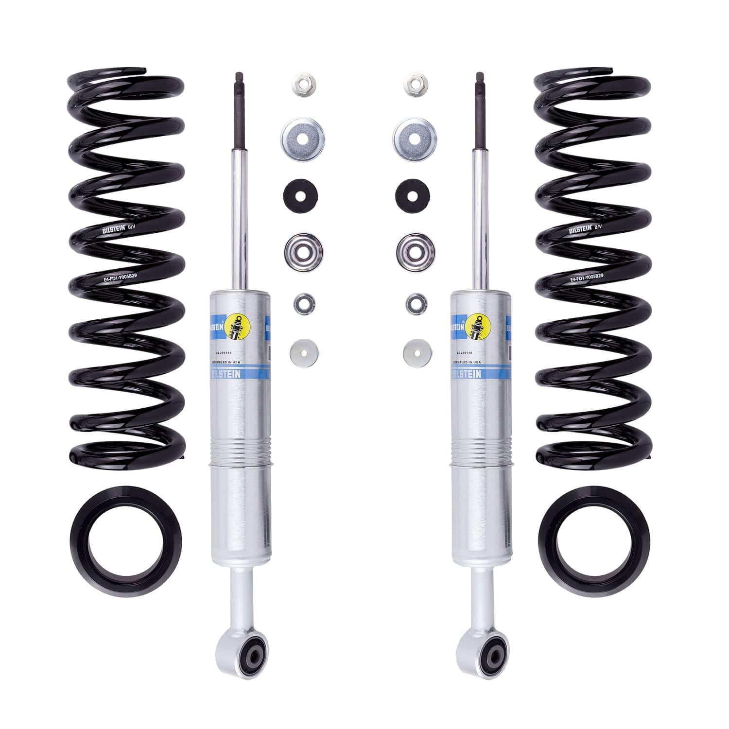 Bilstein B8 6112 leveling kits are designed to provide more ground clearance, allow for larger tires, and increase wheel travel. Multiple snap-ring grooves in the body allow for different spring seat positions, providing 0-2.75 inches of front lift (depending on application). These kits consist of (2) 60mm shock absorbers combined with (2) custom matched cold wound coil springs and (2) billet aluminum spring seats. The large 60mm digressive piston allows for increased damping control for optimal on-road and off-road capabilities. Experience the legendary Bilstein off-road experience with the best direct fit spring and shock kit for your light truck or SUV.   Â