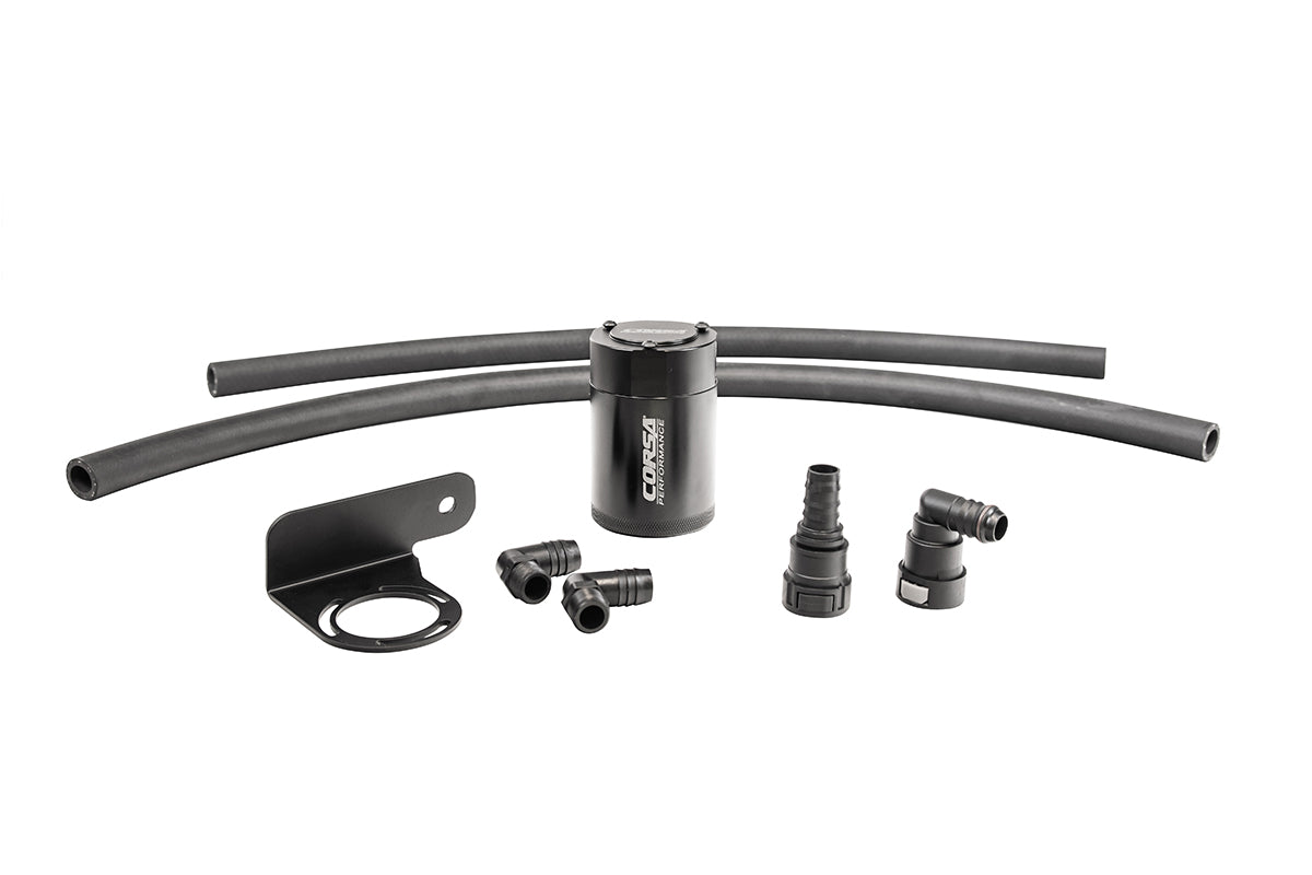 Our oil catch cans are the latest in a line of performance parts designed to maximize vehicle performance and longevity. Made from 6061 aluminum and featuring a multi-stage oil separation system. The CORSA Performance oil catch cans work to eliminate blow-by of gas, water, oil vapors and particulates from the airpath. By reducing the impacts of blow-by, oil catch cans prevent damage to sensitive intake components and helps reduce carbon build-up on valves that over time reduce engine performance. Each vehicle specific oil catch can has been designed with OEM style quick disconnect fittings, premium automotive-grade hoses and upgraded components to ensure your vehicle runs at peak performance. Through careful design CORSA engineers have located each oil catch can in an easily accessible yet safe location allowing for ease of serviceability.