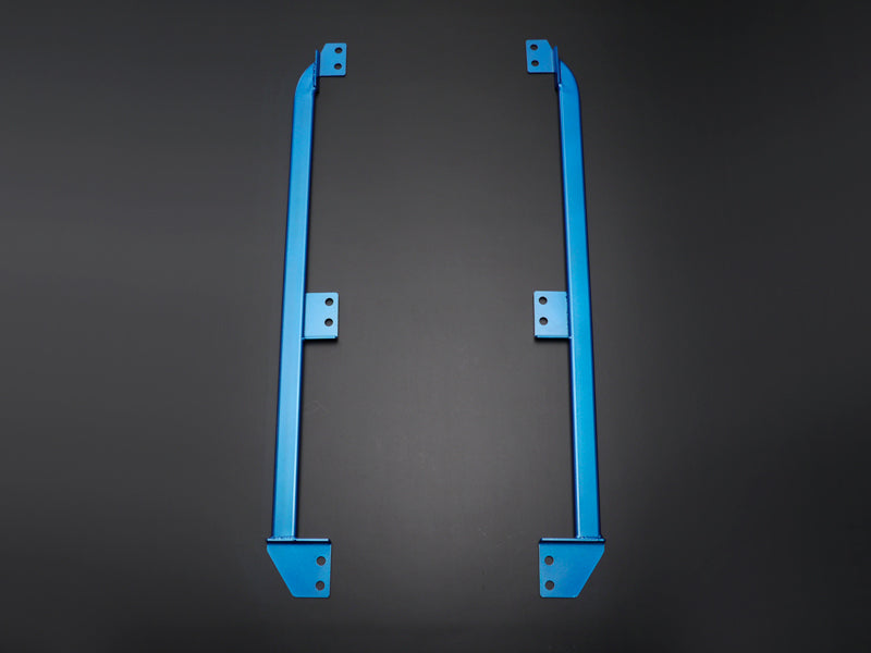The power brace strengthens chassis and minimizes body flex especially at cornering loads, enabling optimal suspension movement at the intended geometrically aligned state. Having the same effect as stitch welding a chassis, the Power Brace series are Bolt-on design with some minor body piece (under cover/interior etc) trimming and completely effective on all vehicle chassis no matter stock or highly modified.