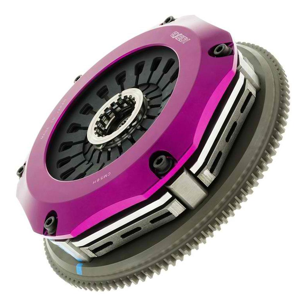 All EXEDY Hyper Multi-Plate clutches come with a lightweight, chromoly steel flywheel and the famous purple anodized forged aluminum clutch cover. Depending on the application, we have both strap drive and lug drive models. All have T5001 cerametallic friction materials for extreme heat resistance. Surprisingly, even with it's additional power capability, most multi-plate clutches exhibit light pedal pressure thanks to a half-engaged "zone" provided by the patented clutch "cushion" function.