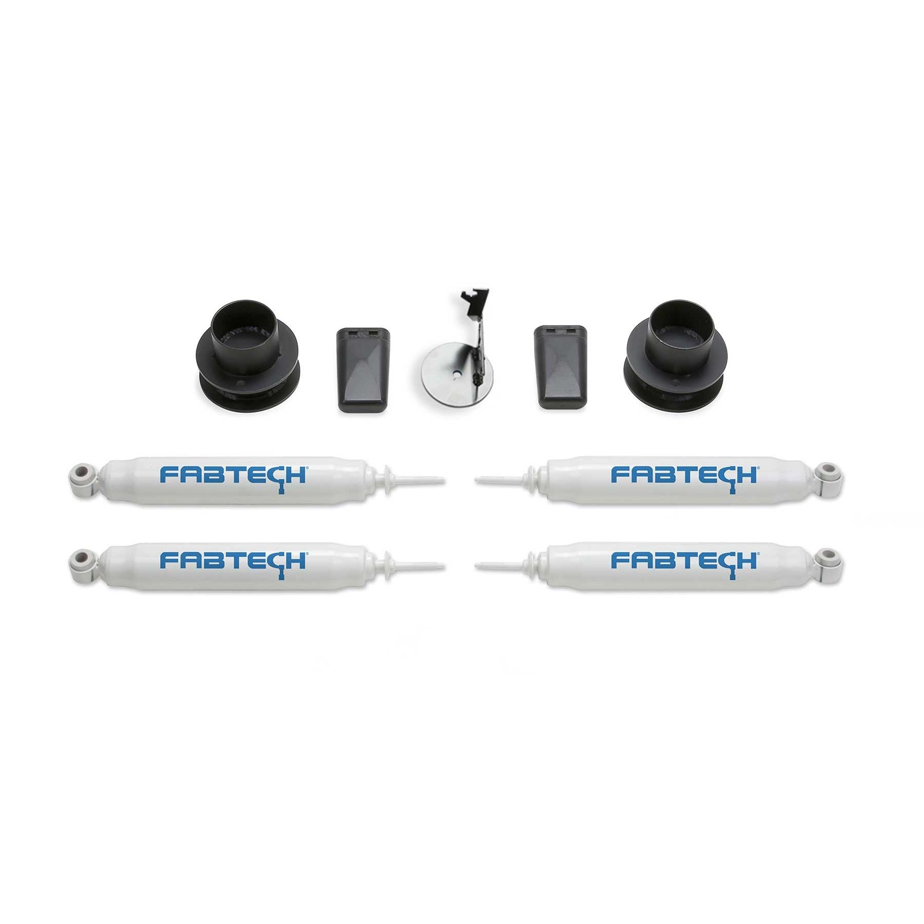 This 2.5in Ram lift kit has been designed to help level the vehicle while keeping the stock ride quality. It's perfect for Ram owners looking for a mild lift to clear 35in tall tires. The factory front Ram coil springs have a purpose built bow in them to aid in vehicle stabilization and handling. Fabtech's exclusive front coil spacers retain the factory coil seat angle and spring bow for stock like ride characteristics. The front shocks are replaced with longer length units to allow for full suspension travel while improving the damping of the Ram suspension. Extended length bump stops are included in this kit to prevent the coils from bind at full compression while eliminating Track Bar interference. The Performance shocks in this Ram lift kit provide a good highway ride. This is a great 2.5in lift kit for Ram 2500 owners looking to level their truck and keep the stock ride. FEATURES: Angled Coil Spacers retain proper factory coil bow for handling. Replacement shocks allow for full travel with increased damping. Extended length bump stops eliminate coil bind and track bar interference. Comes with free 5 year 60,000 Mile Powertrain Warranty.