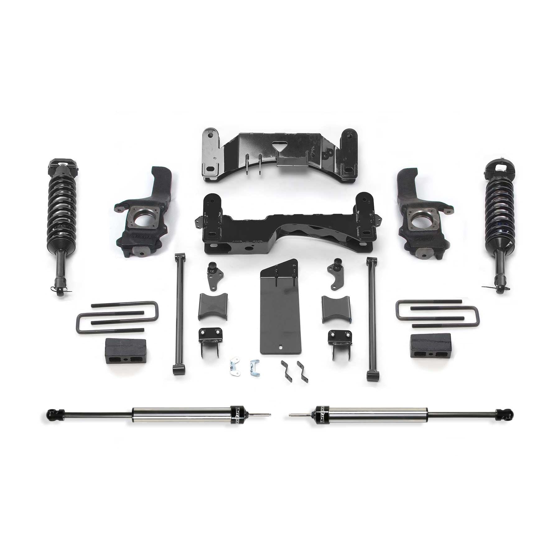 Our Tundra systems feature extended length ductile iron steering knuckles that have been designed to operate within the factory steering geometry. This geometry provides proper turning radius with oversized tires and Wheels. The factory lower control arms are relocated with high arched 1/4'' thick steel crossmembers with an integrated differential skid plate for protection against offroad obstacles. The factory front sway bar is retained and utilizes sway bar drops. The Performance system includes our Dirt Logic 2.5 Stainless Steel Coilover shocks for aggressive offroad use with a good highway ride and utilizes a 3'' block and u-bolt system for rear lift. Includes rear 2.25 Dirt Logic Stainless Steel shocks.