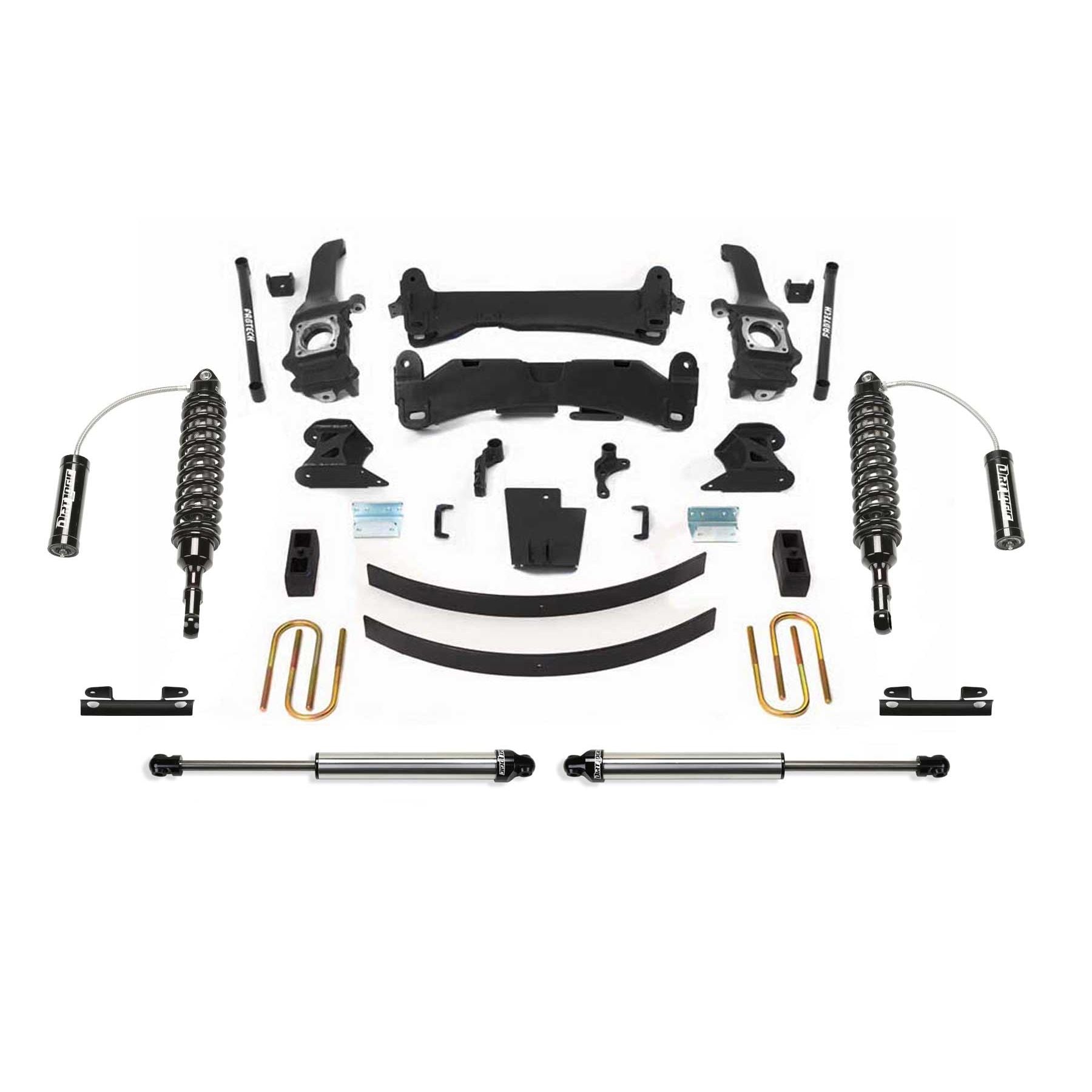 Our 6'' Performance Systems features our Dirt Logic 2.5 adjustable coilover shocks providing superior offroad dampening capacity with a good highway ride. This system includes our proven IFS technology with extended length ductile iron steering knuckles and arched crossmembers for exceptional suspension ground clearance with a 1/4'' thick differential skid plate, impact struts, heavy duty tie rods, rear add-a-leafs and more.