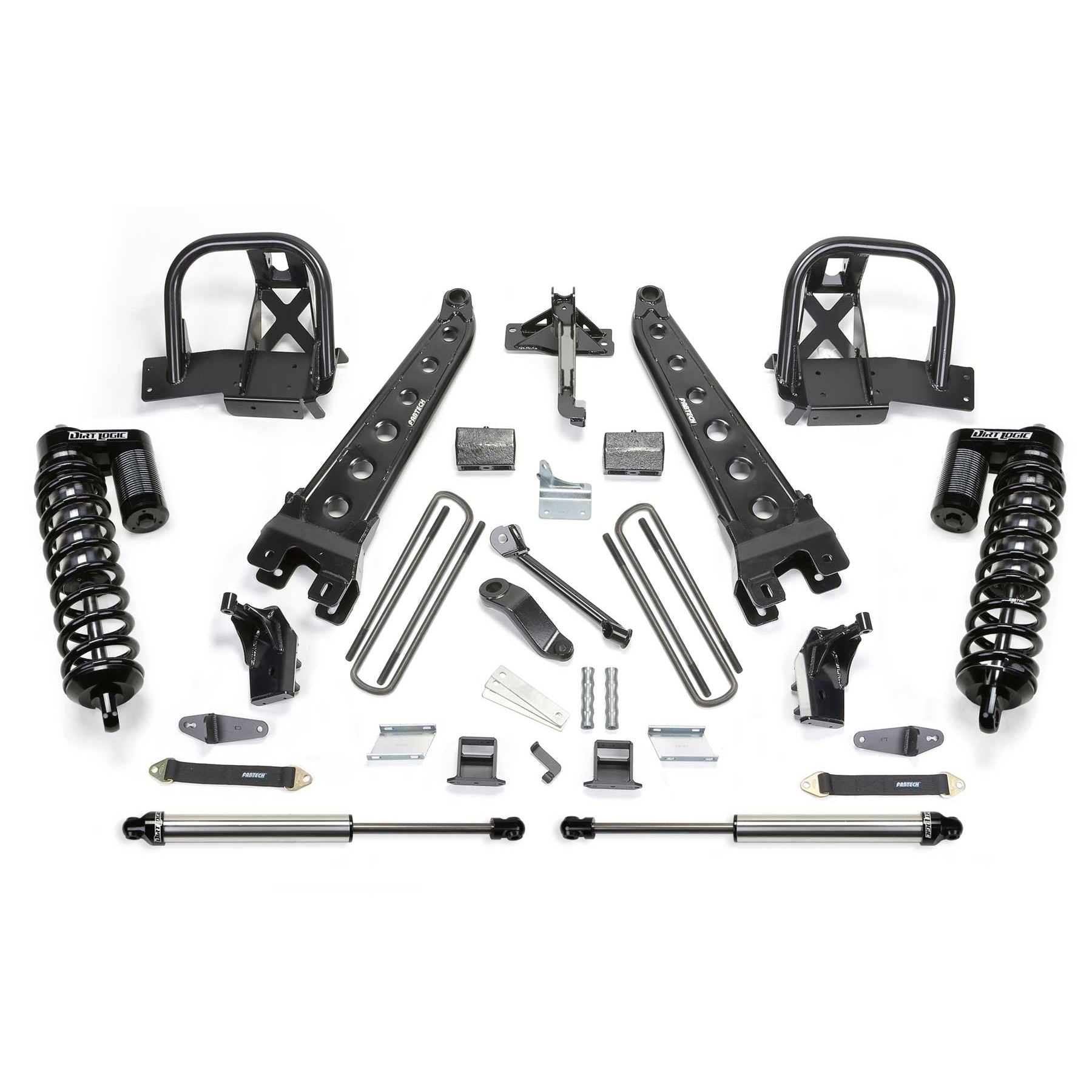 Obtain maximum front suspension damping for Super Duty's with our Dirt Logic 4.0 Stainless Steel Coilover Conversion system. The upper coilover mounts are constructed with 1.75 diameter DOM tubing that replaces the factory coil spring mounts and span across a wide section of the frame for proper impact load distribution. The lower mounts are 1/4'' thick steel that attach to the axle housing, providing solid mounting points for the Dirt Logic 4.0 Stainless Steel Coilover piggyback reservoir shocks. Also included in this system are billet sway bar end links with heim ends and quad layer limiting straps. Includes rear 2.25 Dirt Logic Stainless Steel shocks.