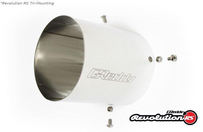 GReddy Universal Revolution RS Muffler and Tip sets create options for custom (single or dual muffler) applications as well as for vehicles not covered by the current line-up. Now with our Tri-bolt removable Tip, optional GReddy RS tips of different length, material and shape are also be purchased separately for more customization.