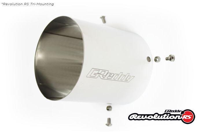 GReddy Universal Revolution RS Muffler and Tip sets create options for custom (single or dual muffler) applications as well as for vehicles not covered by the current line-up. Now with our Tri-bolt removable Tip, optional GReddy RS tips of different length, material and shape are also be purchased separately for more customization.