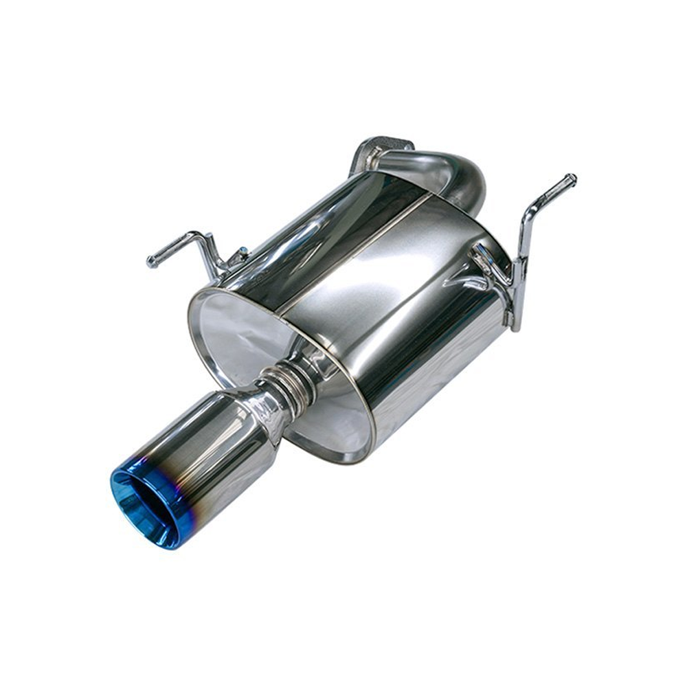 Legamax Premium Series™ 304 SS Axle-Back Exhaust System with Single Rear Exit by HKS®. Exhaust System Type: Axle-Back. Exhaust Tubing Material: 304 SS. Main Tubing Diameter: 2.13". Exhaust System Sound: Aggressive / Loud. Full Straight Structure & Low Exhaust Pressure! Full straight structure with no restriction and pipe layout for efficient exhaust gas flow inside the silencer achieves a 50% reduction in the exhaust pressure compared to the stock exhaust system. Sporty Rear View with Double-sided Dual Titanium Exhaust Tips Arranging the titanium dual exhaust tips on both sides instead of stock hidden tips transform the rearview into a sporty appearance.