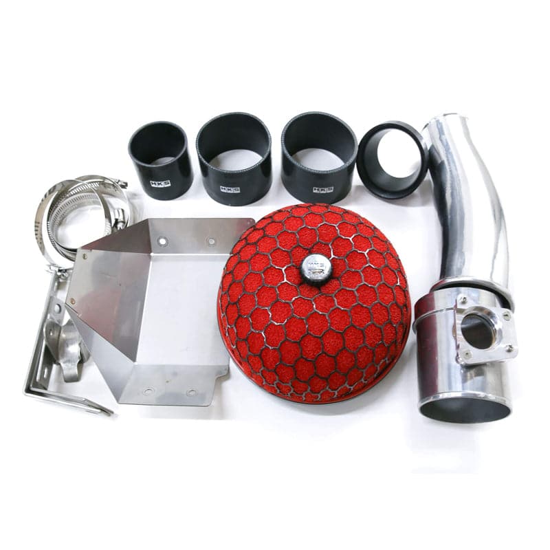 The HKS Racing Suctions combines a Super Power Flow (an open type filter) with aluminum pipe to improve air intake efficiency.