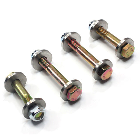 Factory eccentric bolts for camber/toe adjustments tend to slip under high cornering loads, causing the rear alignment to change. Our ISR eccentric lockout kit deletes the factory eccentric bolts to keep your rear alignment where you set it. You must have adjustable control arms in order to adjust camber and toe after deleting the factory eccentric bolts. ISR lockout plates are machined from stainless steel and supplied grade 10.9 hardware for absolutely NO-slip.