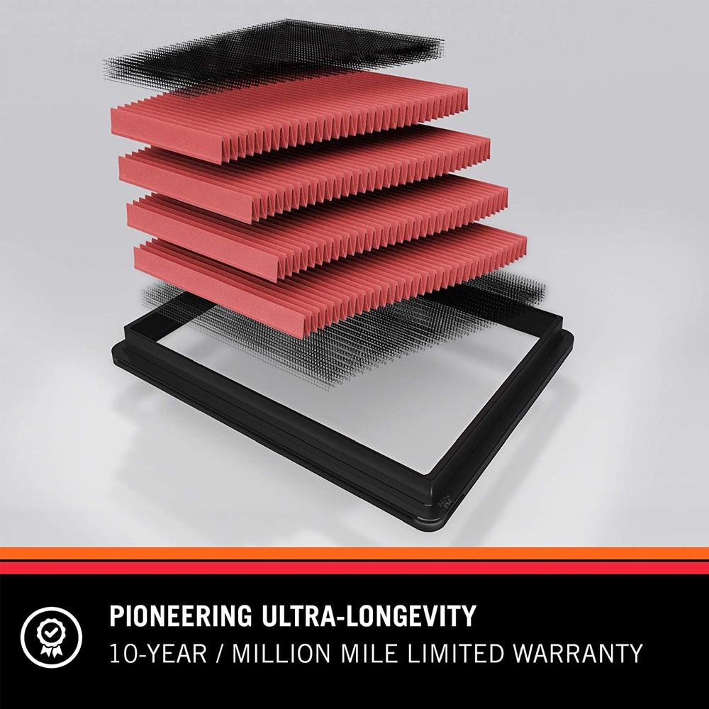 K&N's replacement air filters are designed to increase horsepower and acceleration while providing excellent filtration. We make over 1,200 different replacement air filters for the majority of vehicles on the road. These filters are washable and reusable and are custom designed to fit into your existing factory air box. Their drop-in design means adding performance is simple. With most vehicles you simply remove the disposable air filter and replace it with a K&N. See applicable instruction sheet for details. Our stock replacement air filters for street vehicles are covered by our famous K&N Million-Mile Limited Warranty and will be the last air filter your vehicle will ever need.