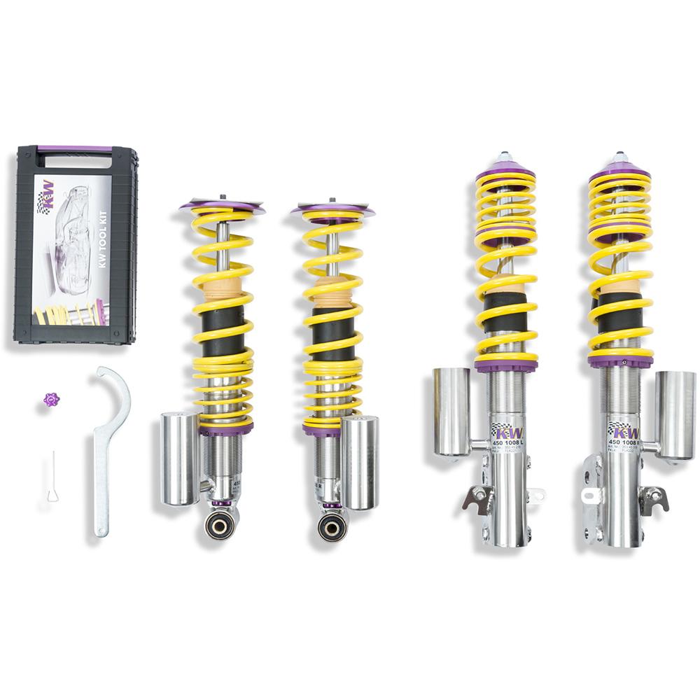 The new KW Variant 3 Coilover System is state-of-the-art technology for skilled and experienced drivers. The separate and independent compression and rebound damping options allow a truly individual driving setup. These unique systems with the 3 individually adjustable components, allows for adjustment of the compression of the damper in the low-speed range, while the highspeed set-up, so decisive for driving comfort, has been preset by our engineers.
