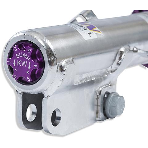 The new KW Variant 3 Coilover System is state-of-the-art technology for the skilled and experienced driver. The separate and independent compression and rebound damping options allow a truly individual driving set-up. These unique systems with the 3 individually adjustable components, allows for adjustment of the compression of the damper in the low-speed range, while the highspeed set-up, so decisive for driving comfort, has been preset by our engineers.