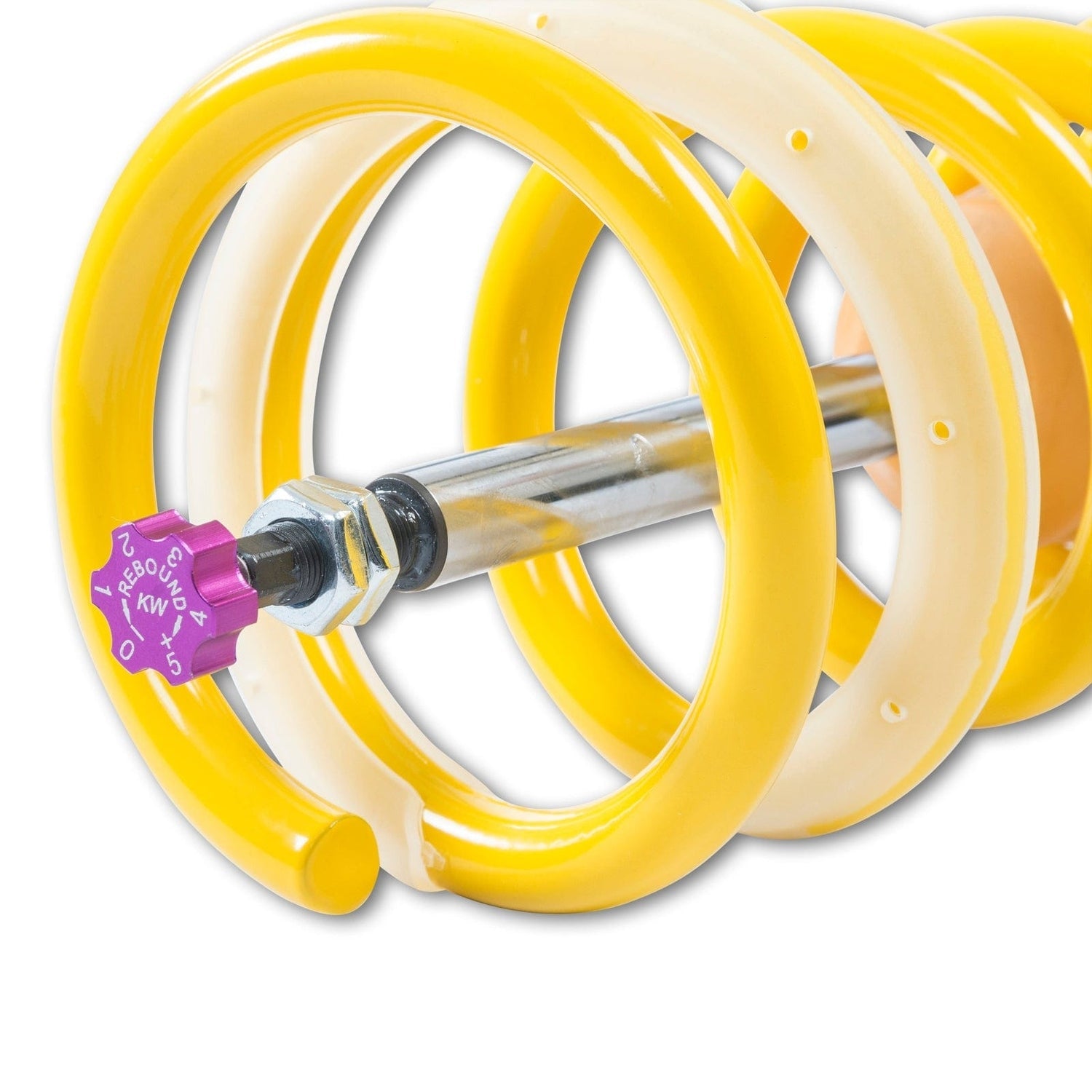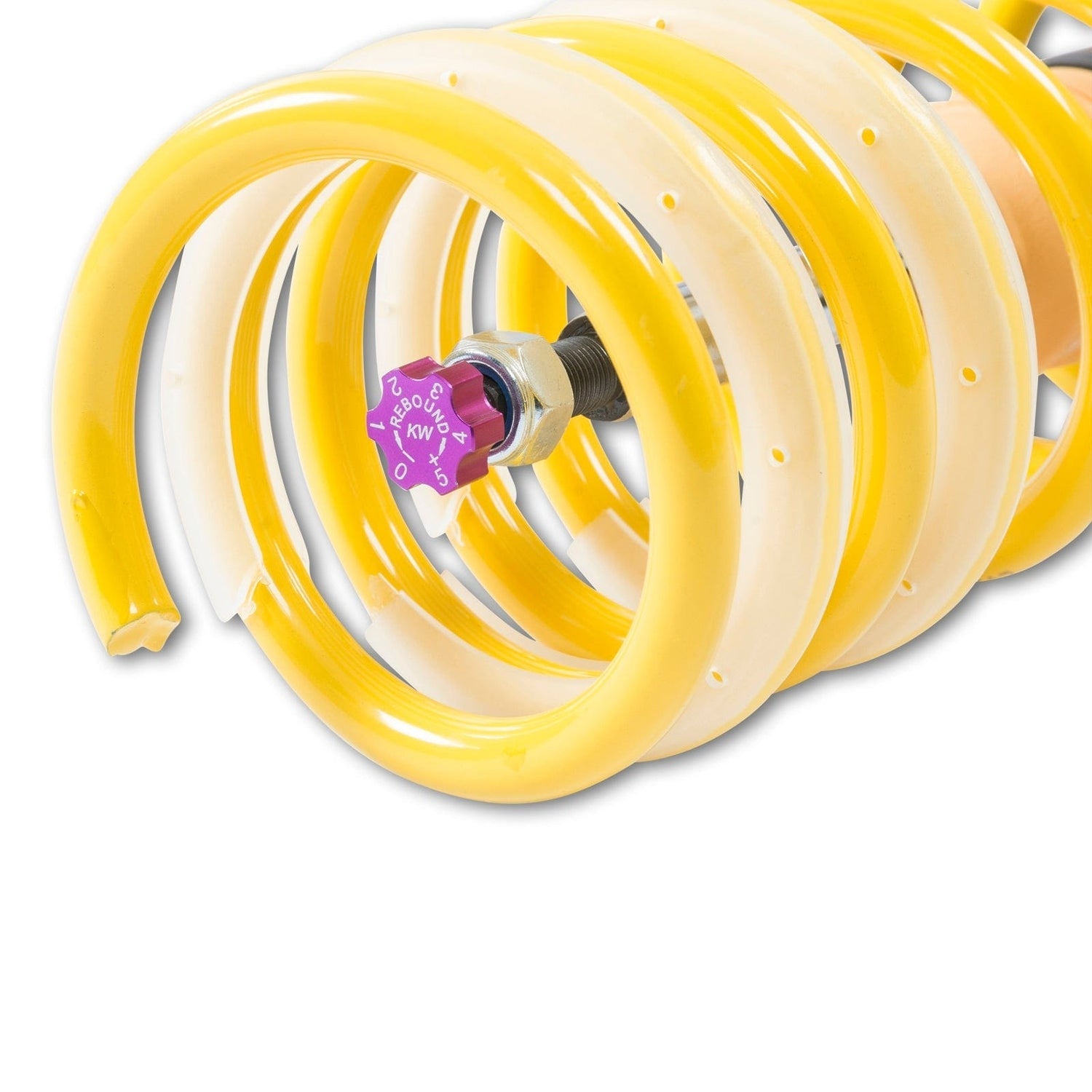 Built with paramount attention to detail and using only the highest quality components, the stainless-steel KW V2 Comfort coilover struts are 100 percent corrosion-resistant and have an unlimited lifespan. The dirt resistant trapezoid shaped threads and the adjustable composite spring seat mean that the ability to adjust the ride height of the vehicle will not be affected even after many years of driving allowing you to emphasize the sportiness of your vehicle visually.