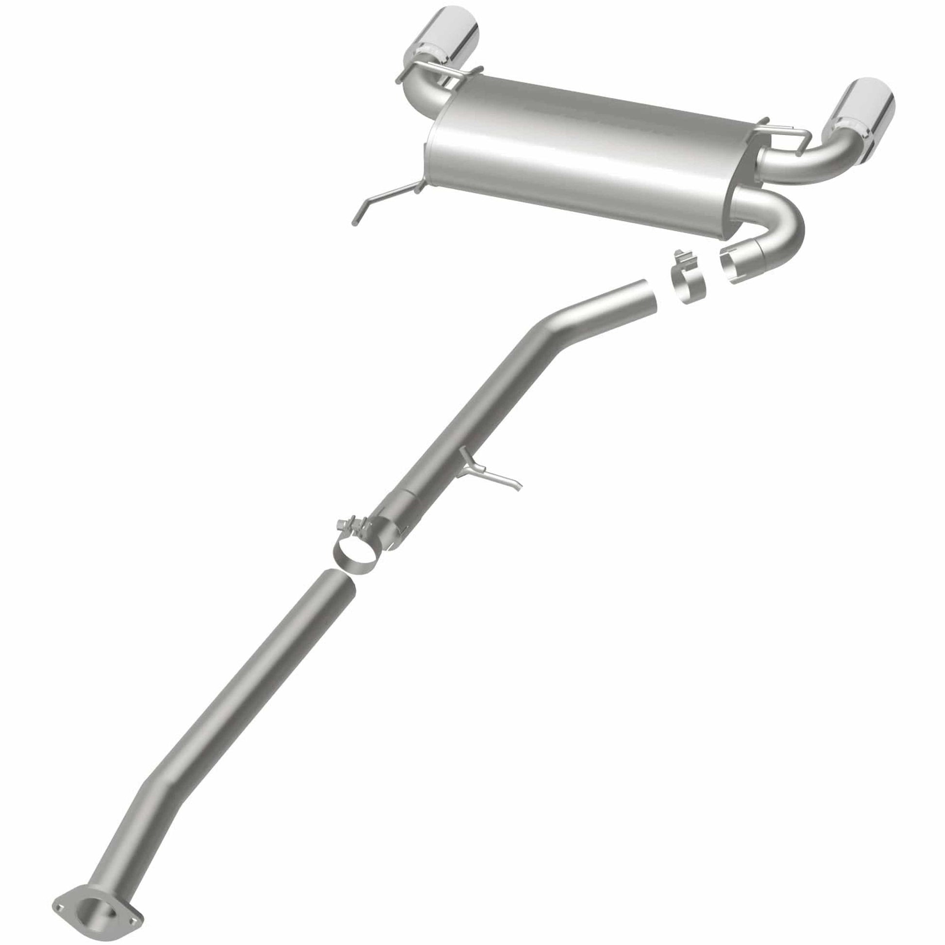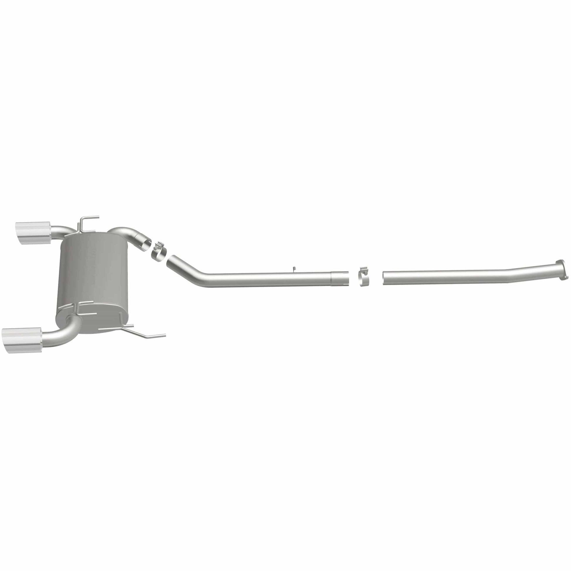 The MagnaFlow 2003-2007 INFINITI G35 Street Series Cat-Back Performance Exhaust System brings out the personality of your 3.5L 2003-2007 INFINITI G35 with our signature resonant, powerful engine tone and dyno-proven performance. Thanks to its fast-flowing, mandrel bent 2.5in. main piping and 1 Straight-Through mufflers ending in a Dual Split Rear exit with 4in. Polished Welded-On Double Wall Angle Cut Folded Edge tips, this INFINITI G35 exhaust kit has the performance chops to match its sporty sound and appearance. Upgrade your ride to the next level with an exhaust that has the pipes to put other INFINITI G35's to shame. With this system your vehicle will be producing Moderate exterior and Mild interior sound levels while leaving other cars and trucks feeling envious at every stoplight. Exhaust kit 16641 features a cat-back layout that replaces your ride's stock exhaust components from near the catalytic converter on back. Extensive 3D scanning during development has resulted in a direct-fit design that you can easily install yourself. 16641 is produced using CNC precision robotic manufacturing techniques and is backed by MagnaFlow's 1-year limited finish warranty and limited lifetime construction warranty.