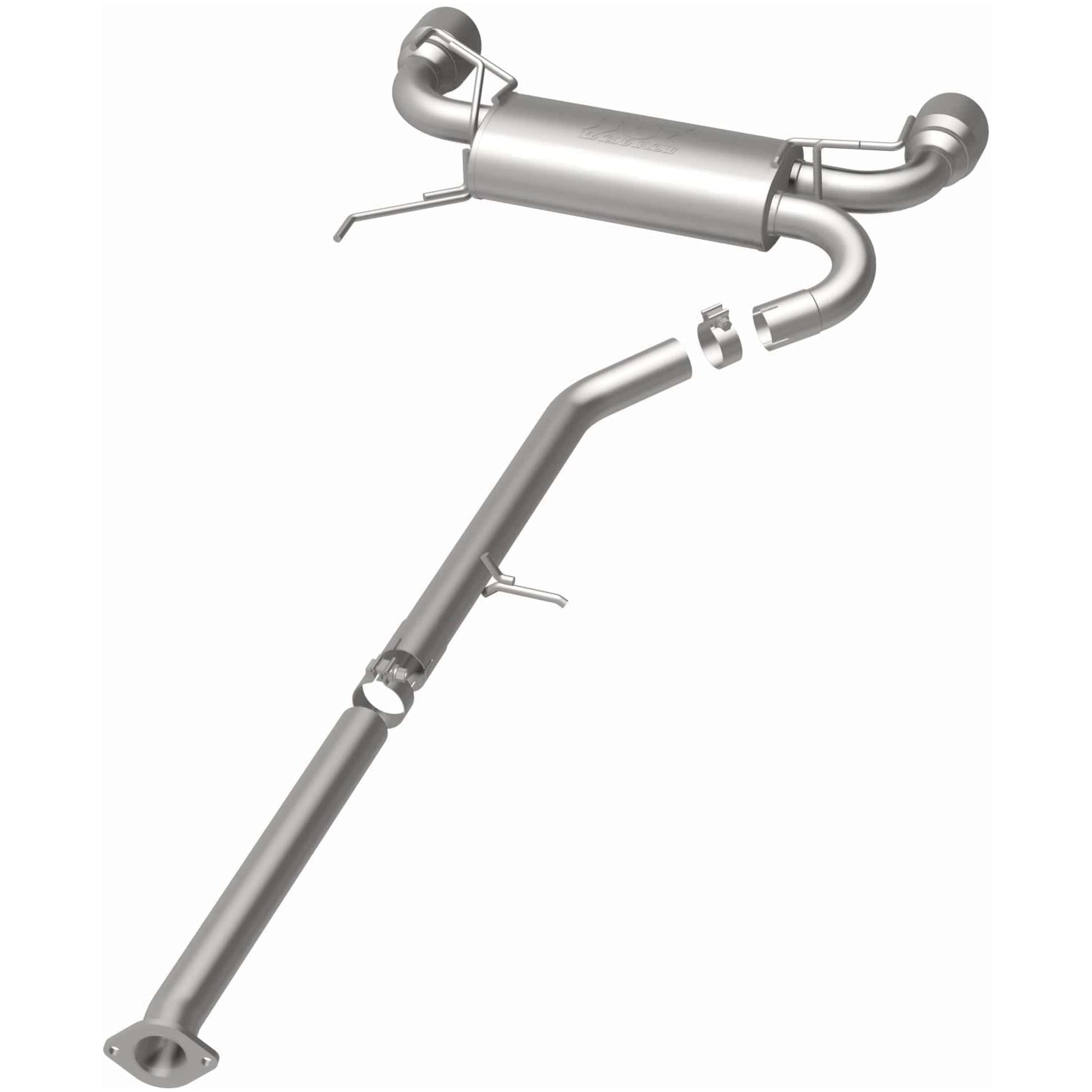 The MagnaFlow 2003-2009 Nissan 350Z Street Series Cat-Back Performance Exhaust System brings out the personality of your 3.5L 2003-2009 Nissan 350Z with our signature resonant, powerful engine tone and dyno-proven performance. Thanks to its fast-flowing, mandrel bent 2.5in. main piping and 1 Straight-Through mufflers ending in a Dual Split Rear exit with 4.5in. Polished Welded-On Double Wall Angle Cut Folded Edge tips, this Nissan 350Z exhaust kit has the performance chops to match its sporty sound and appearance. Upgrade your ride to the next level with an exhaust that has the pipes to put other Nissan 350Z's to shame. With this system your vehicle will be producing Moderate exterior and Mild interior sound levels while leaving other cars and trucks feeling envious at every stoplight. Exhaust kit 19342 features a cat-back layout that replaces your ride's stock exhaust components from near the catalytic converter on back. Extensive 3D scanning during development has resulted in a direct-fit design that you can easily install yourself. 19342 is produced using CNC precision robotic manufacturing techniques and is backed by MagnaFlow's 1-year limited finish warranty and limited lifetime construction warranty.