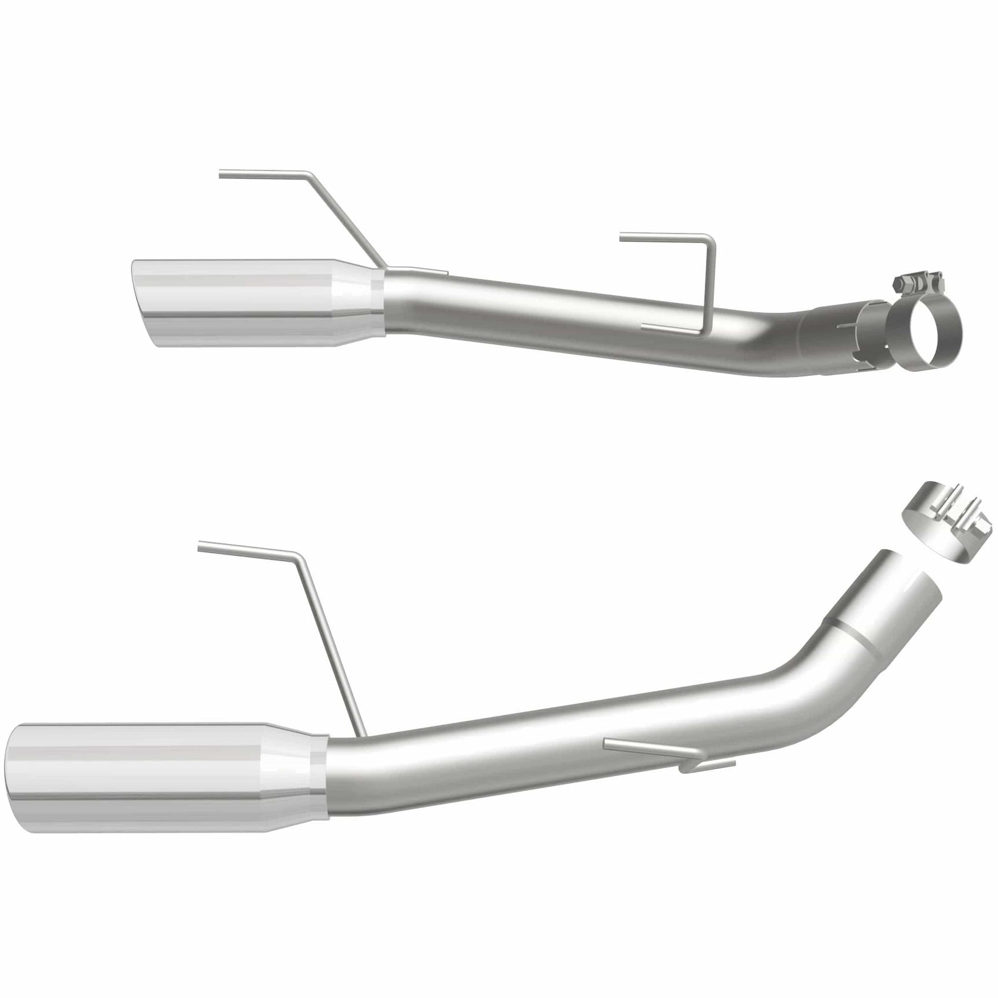 The MagnaFlow 2005-2009 Ford Mustang Race Series Axle-Back Performance Exhaust System 16843 doesn't leave any performance on the table with a race-ready, light weight, dyno-proven design ready to help your 4.6L, 5.4L 2005-2009 Ford Mustang take on any pretenders, whether on the track or the street. Exhaust kit 16843 is engineered to produce our powerful, resonant signature exhaust note at Very Aggressive exterior and Aggressive interior sound levels with an axle-back layout that replaces your vehicle's exhaust components from near the rear axle on back. Please check to ensure compliance with local noise regulations. This Ford Mustang exhaust kit features fast-flowing mandrel bent 2.5in. diameter main piping that ends in a Dual Split Rear exit with 3.5in. Polished Welded-On Double Wall Angle Cut Rolled Edge tips. Extensive 3D scanning during development and the use of advanced CNC precision robotic manufacturing techniques ensures that 16843's direct-fit design fits so perfectly that you can easily install the system yourself. The durable, corrosion resistant stainless steel construction of exhaust system 16843 is backed by MagnaFlow's limited lifetime warranty.