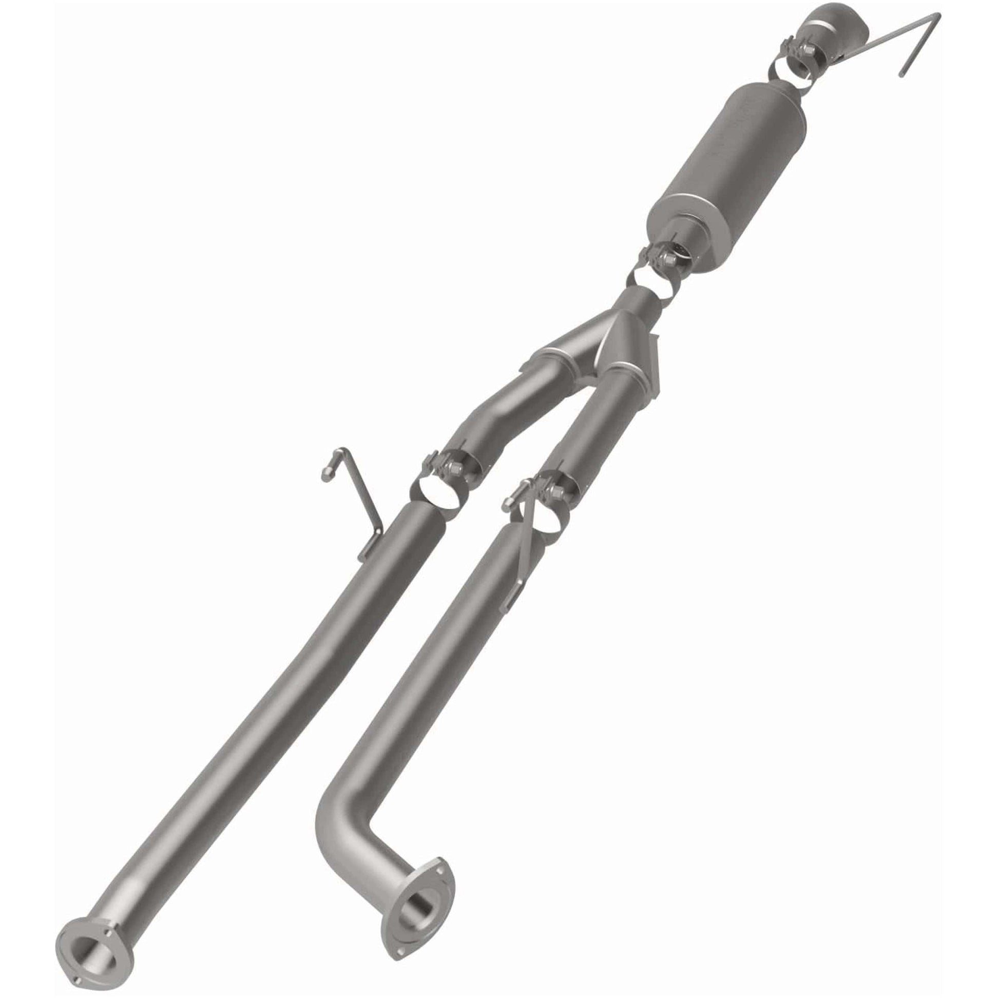 The MagnaFlow 2007-2008 Toyota Tundra Off-Road Pro Series Cat-Back Performance Exhaust System brings additional off-roading prowess and our deep signature exhaust note to your 5.7L 2007-2008 Toyota Tundra with a weight-optimized, dyno-tested, corrosion resistant and durable stainless steel design engineered to closely hug the undercarriage for improved ground clearance. Exhaust kit 17112 is engineered to produce Very Aggressive exterior and Aggressive interior sound levels. Extensive 3D scanning was used during the development of this Toyota Tundra exhaust system to create a direct-fit design, enabling a do-it-yourself installation process. 17112's emissions-legal cat-back design replaces all your truck's exhaust components from the catalytic converter on back with its 2.5in. diameter mandrel bent main piping that passes through 1 Straight-Through mufflers before ending in a turndown before rear axle exit with 3in. Satin Clamp-On Single Wall Turndown Cut Edge tips. Exhaust system 17112 is produced using advanced CNC precision robotic manufacturing techniques and backed by MagnaFlow's limited lifetime warranty.