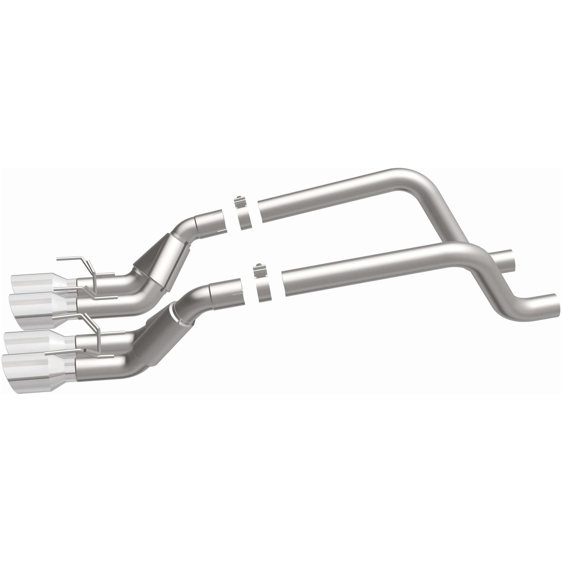 The MagnaFlow 2009-2013 Chevrolet Corvette Race Series Axle-Back Performance Exhaust System 15283 doesn't leave any performance on the table with a race-ready, light weight, dyno-proven design ready to help your 6.2L 2009-2013 Chevrolet Corvette take on any pretenders, whether on the track or the street. Exhaust kit 15283 is engineered to produce our powerful, resonant signature exhaust note at Very Aggressive exterior and Aggressive interior sound levels with an axle-back layout that replaces your vehicle's exhaust components from near the rear axle on back. Please check to ensure compliance with local noise regulations. This Chevrolet Corvette exhaust kit features fast-flowing mandrel bent 2.5in. diameter main piping that ends in a Quad Center Rear exit with 4in. Polished Welded-On Double Wall Angle Cut Folded Edge tips. Extensive 3D scanning during development and the use of advanced CNC precision robotic manufacturing techniques ensures that 15283's direct-fit design fits so perfectly that you can easily install the system yourself. The durable, corrosion resistant stainless steel construction of exhaust system 15283 is backed by MagnaFlow's limited lifetime warranty.