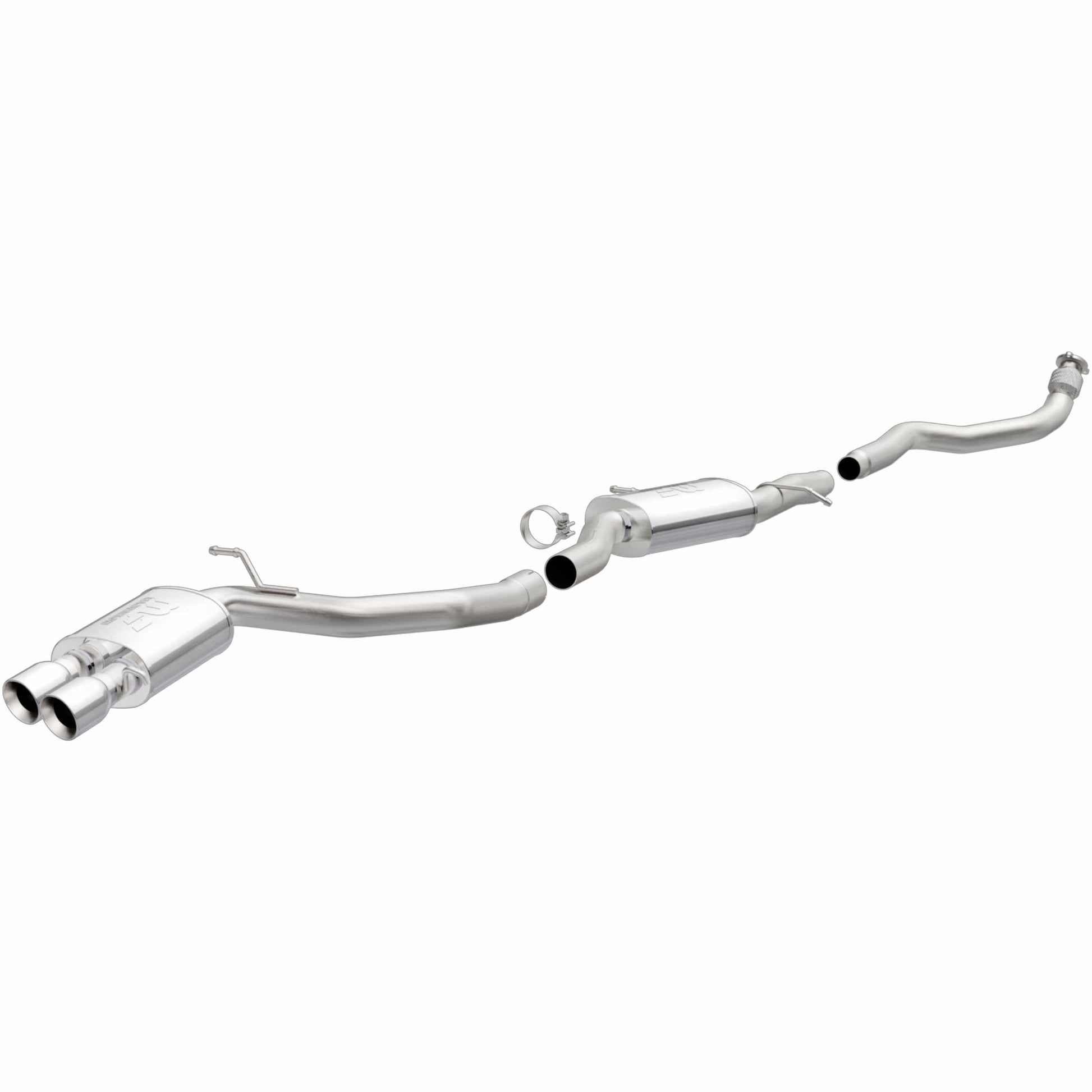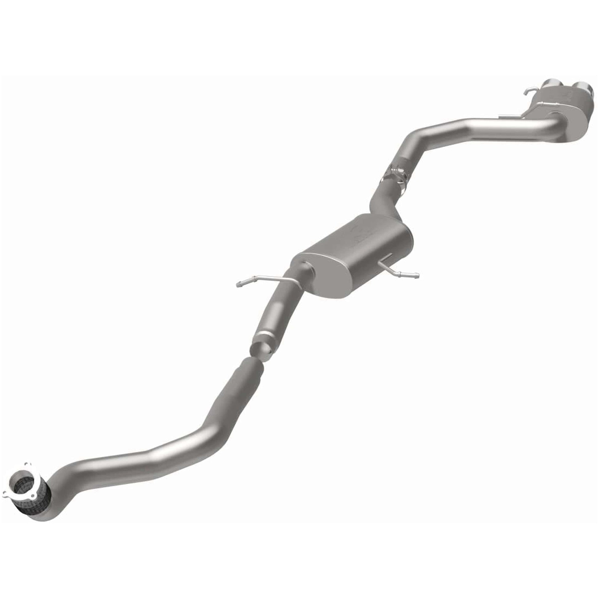 The MagnaFlow 2009-2016 Audi A4 Quattro Sport Series Cat-Back Performance Exhaust System enhances your 2.0L 2009-2016 Audi A4 Quattro with an aggressive character that is sure to help you stand out from the other Audi A4 Quattro you encounter on the street. With its 3in. diameter fast-flowing mandrel bent main piping that passes through 2 Straight-Through mufflers before ending in a Dual Straight Driver Side Rear exit with 3.5in. Polished Welded-On Double Wall Angle Cut Folded Edge tips, this dyno-proven Audi A4 Quattro exhaust system refuses to be ignored. As such, 15519 is tuned to produce our powerful, resonant signature exhaust note at Aggressive exterior and Moderate interior sound levels, so please check to ensure compliance with local noise regulations. The system's cat-back design replaces all your import's stock exhaust components from the catalytic converter on back. Extensive 3D scanning and CNC precision robotic manufacturing techniques are used to ensure that your exhaust system fits perfectly with just a simple do-it-yourself installation process. The durable, corrosion resistant stainless steel construction of 15519 is backed by MagnaFlow's limited lifetime warranty.