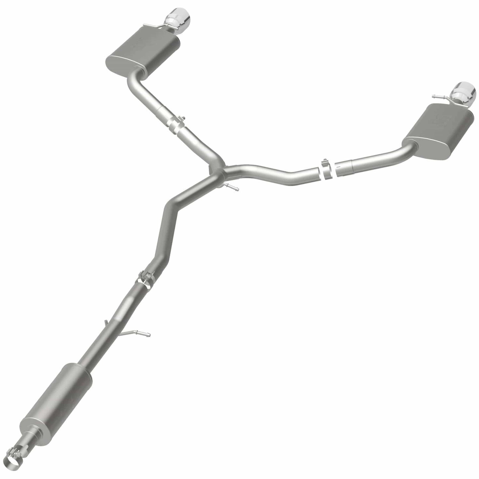 The MagnaFlow 2013-2019 Ford Taurus Street Series Cat-Back Performance Exhaust System brings out the personality of your 3.5L 2013-2019 Ford Taurus with our signature resonant, powerful engine tone and dyno-proven performance. Thanks to its fast-flowing, mandrel bent 2.5in. main piping and 3 Straight-Through mufflers ending in a Dual Split Rear exit with 4.5in. Polished Welded-On Double Wall Angle Cut Folded Edge tips, this Ford Taurus exhaust kit has the performance chops to match its sporty sound and appearance. Upgrade your ride to the next level with an exhaust that has the pipes to put other Ford Taurus's to shame. With this system your vehicle will be producing Moderate exterior and Mild interior sound levels while leaving other cars and trucks feeling envious at every stoplight. Exhaust kit 19111 features a cat-back layout that replaces your ride's stock exhaust components from near the catalytic converter on back. Extensive 3D scanning during development has resulted in a direct-fit design that you can easily install yourself. 19111 is produced using CNC precision robotic manufacturing techniques and is backed by MagnaFlow's 1-year limited finish warranty and limited lifetime construction warranty.