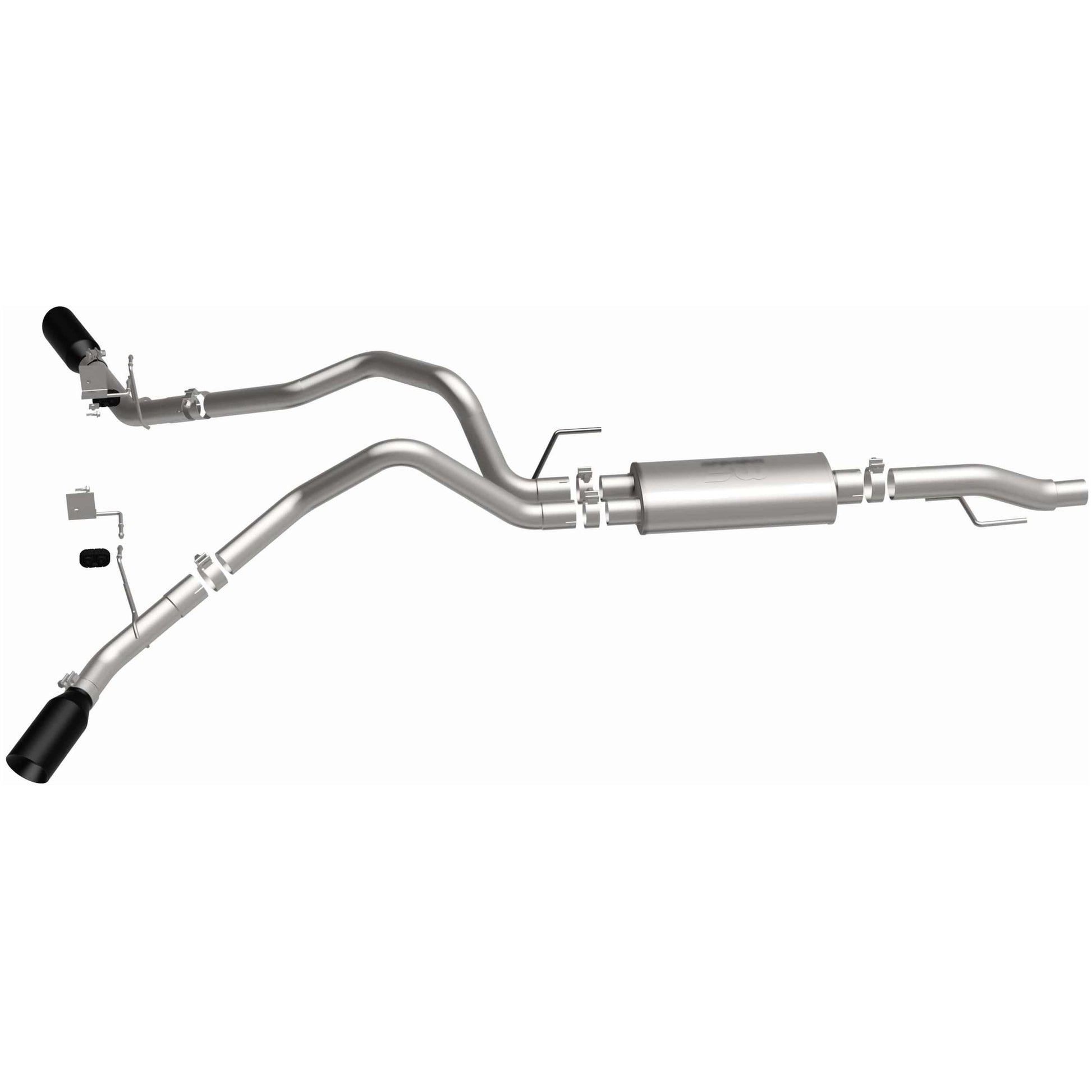 The MagnaFlow 2015-2020 Ford F-150 Street Series Cat-Back Performance Exhaust System brings out the personality of your 5.0L 2015-2020 Ford F-150 with our signature resonant, powerful engine tone and dyno-proven performance. Thanks to its fast-flowing, mandrel bent 3in. main piping and 1 Straight-Through mufflers ending in a Dual Split Rear Behind Rear Tires exit with 4in. Black Coated Clamp-On Double Wall Angle Cut Folded Edge tips, this Ford F-150 exhaust kit has the performance chops to match its sporty sound and appearance. Upgrade your ride to the next level with an exhaust that has the pipes to put other Ford F-150's to shame. With this system your vehicle will be producing Aggressive exterior and Moderate interior sound levels while leaving other cars and trucks feeling envious at every stoplight. Exhaust kit 19507 features a cat-back layout that replaces your ride's stock exhaust components from near the catalytic converter on back. Extensive 3D scanning during development has resulted in a direct-fit design that you can easily install yourself. 19507 is produced using CNC precision robotic manufacturing techniques and is backed by MagnaFlow's 1-year limited finish warranty and limited lifetime construction warranty.
