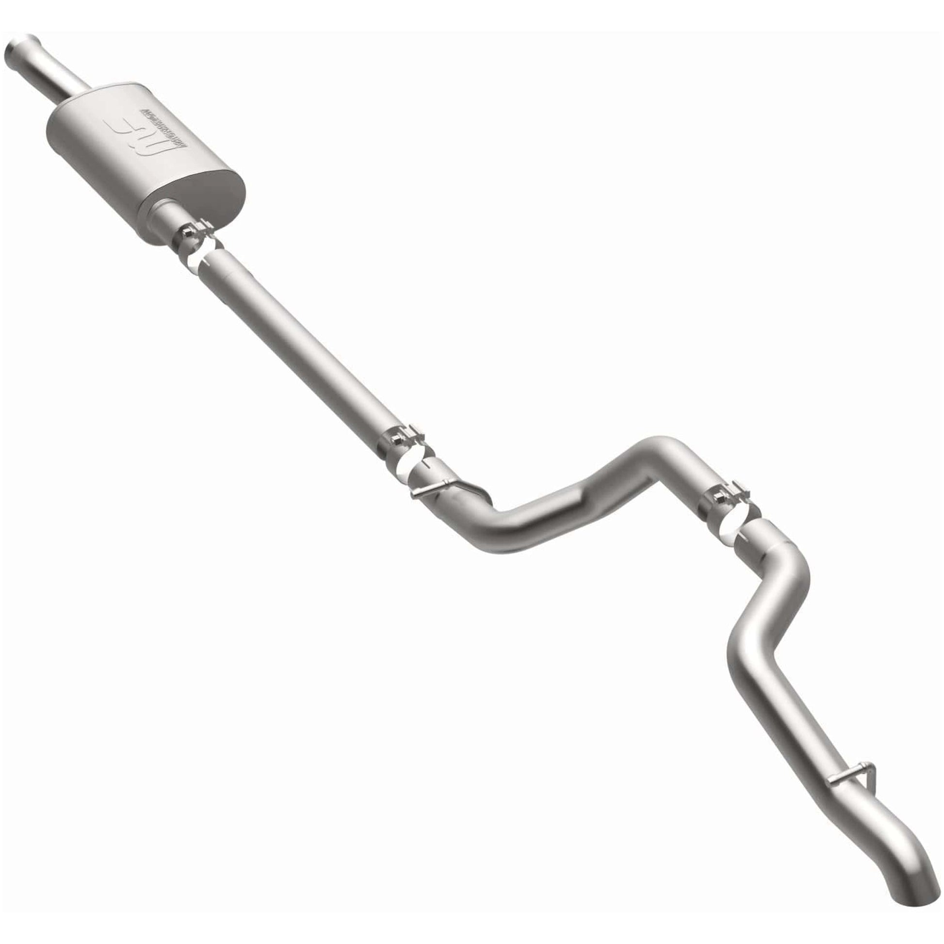 The MagnaFlow 2018-2025 Jeep Wrangler Rock Crawler Series Cat-Back Performance Exhaust Systembrings superior boulder-climbing capabilities to your 3.6L 2018-2025 Jeep Wrangler with a weight-optimized, dyno-tested, corrosion resistant and durable stainless steel design engineered to closely hug the undercarriage of your rig for improved ground clearance. Exhaust kit 19386 is engineered to produce our powerful, resonant signature exhaust note at Aggressive exterior and Moderate interior sound levels. Extensive 3D scanning was used during the development of this Jeep Wrangler exhaust system to create a direct-fit design, enabling a do-it-yourself installation process. 19386's emissions-legal cat-back design replaces all your rig's exhaust components from the catalytic converter on back with its 2.5in. diameter mandrel bent main piping that passes through 1 Straight-Through mufflers before ending in a Single Straight Driver Side Rear exit. The turndown style tipless exit improves departure angles, allowing for more options when it comes to traversing tricky boulders and other off-road obstacles. Exhaust system 19386 is produced using advanced CNC precision robotic manufacturing techniques and backed by MagnaFlow's limited lifetime warranty.