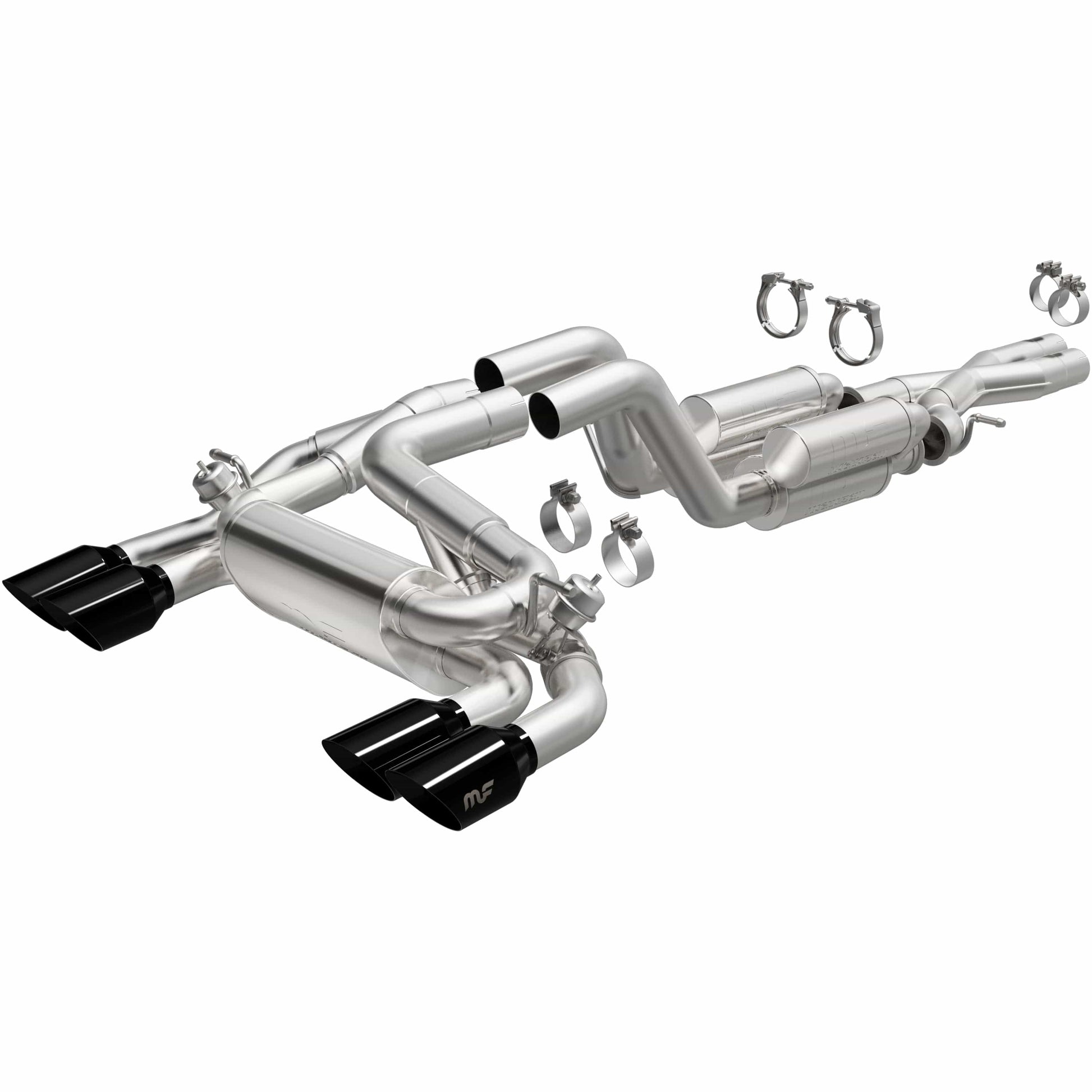 The MagnaFlow Jeep Wrangler 392 Street Series Cat-Back Performance Exhaust System #19598 brings the latest evolution in exhaust sound and dyno-proven performance to your already capable 2021-2024 Jeep Wrangler 392. The 3” main tubing of exhaust kit #19598 flows through dual free flowing straight through mufflers and NDT (No Drone Technology) resonators before terminating in a quad rear exit with 4” black chrome tips. #19598 is tuned to produce a powerful, resonant performance exhaust tone while maintaining moderate interior sound levels. The integrated NDT technology keeps unwanted droning noises in check at lower engine speeds such as when cruising on the highway. This Jeep Wrangler 392 exhaust system is made of durable, corrosion resistant stainless steel and is produced using advanced CNC precision robotic manufacturing techniques that enable #19598 to feature a direct-fit design that you can install yourself. MagnaFlow stands by this performance exhaust kit with our 1-year finish warranty and limited lifetime construction warranty.