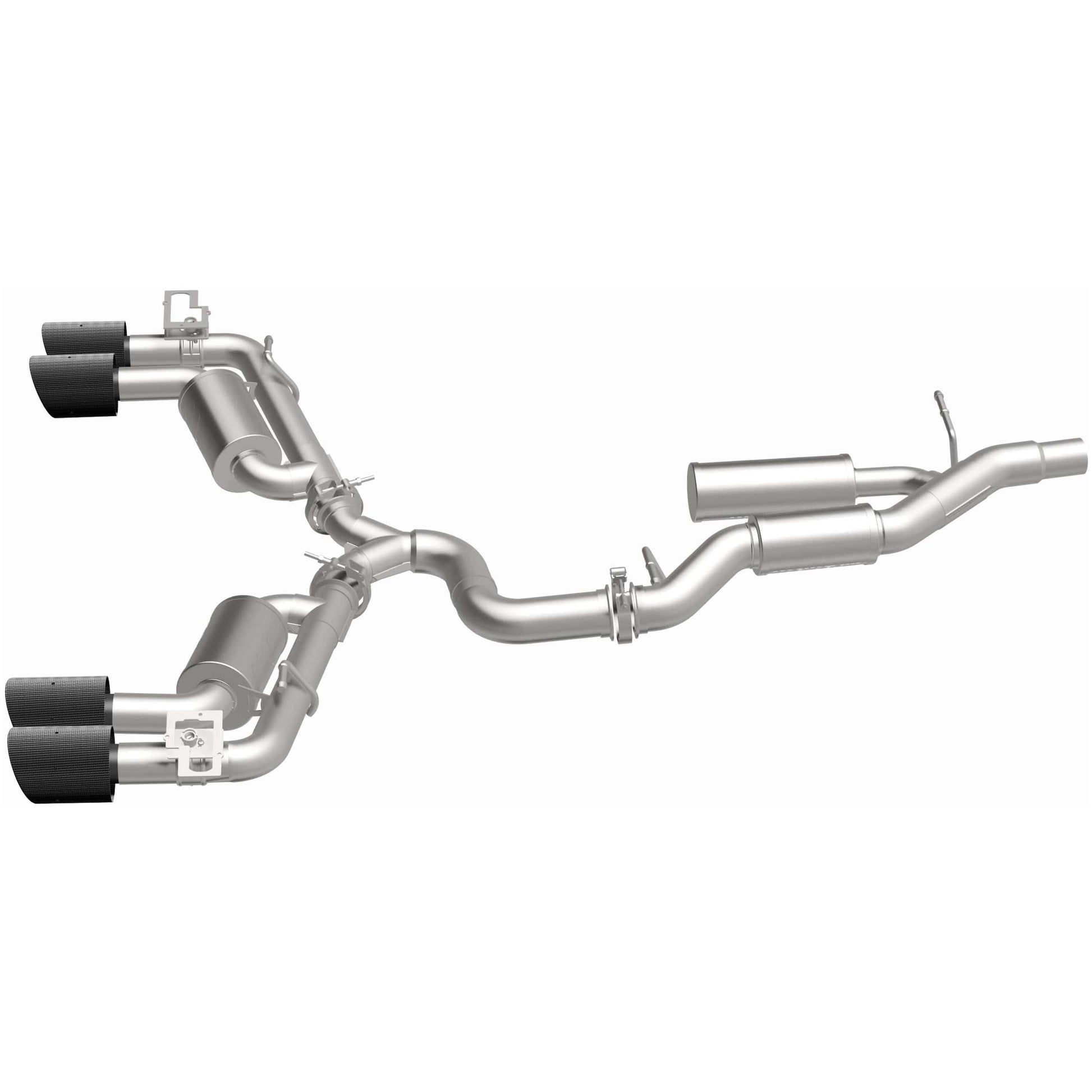 The MagnaFlow NEO Series Cat-back Volkswagen Golf R Performance Exhaust System #19617 is engineered to elevate the sound of the 2.0L I4 in your 2022-2024 Volkswagen Golf R to the next level while utilizing MagnaFlow’s No Drone Technology (NDT) technology to keep unwanted droning noises in check at cruising speeds. These NDT resonators are integrated into the performance exhaust system’s 3” mandrel bent main tubing which passes through three 4” x 4” x 8” straight-through mufflers before terminating in a quad split rear exit with 4.5” carbon fiber tips. Our Tech Center team has worked diligently to ensure that the fully functional valves in exhaust kit #19617 seamlessly integrate with the factory drive mode selections in your 2022-2024 Golf R. The direct-fit clamp-on inlet design is so easy to install that you can do it yourself and it replaces all your hot hatchback’s exhaust components from near the catalytic converter on back. The entire system is secured with quick-release racing-bred V-band clamps and made of durable, corrosion resistant stainless steel (except the carbon fiber tips), all backed by MagnaFlow’s limited lifetime construction warranty.