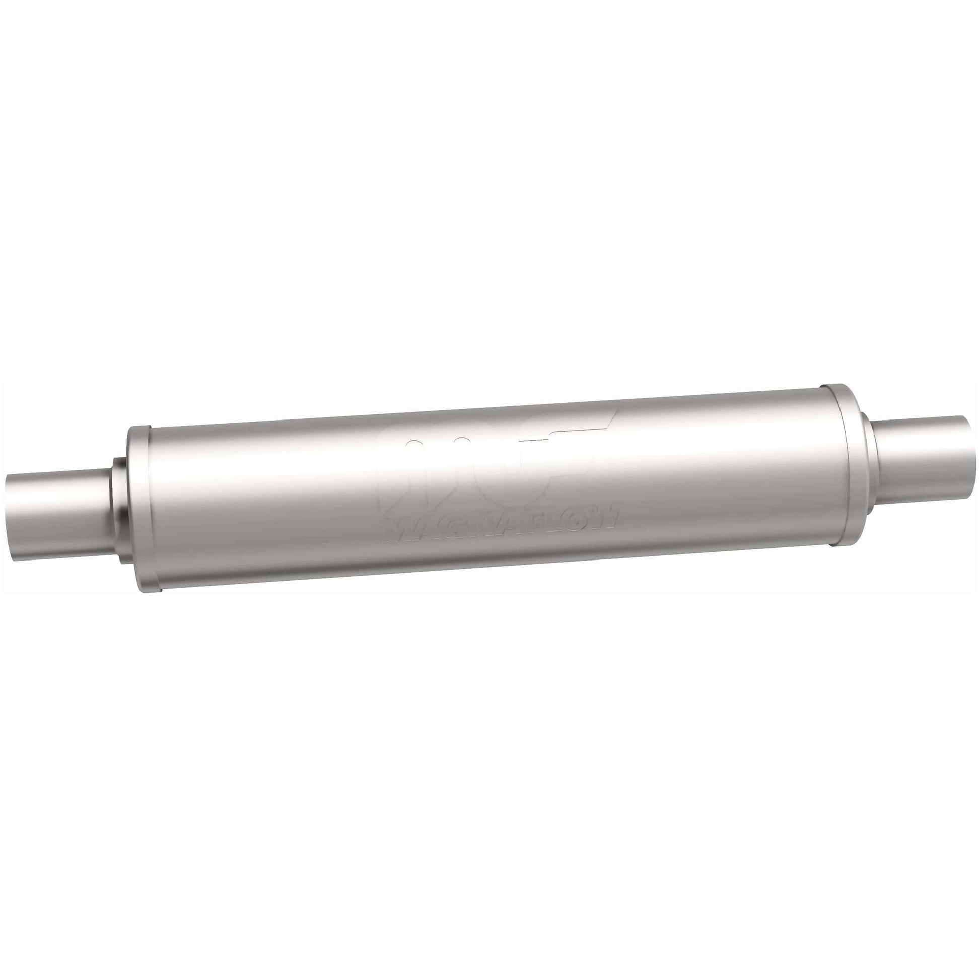 The MagnaFlow 4in. Round Straight-Through Performance Exhaust Muffler 10424 brings our world-famous exhaust sound and dyno-proven performance to your ride in a weight-optimized 4x4x18in. package with a premium satin finish. The straight-through free-flowing design of this round-bodied muffler's reversible, universal 2/2in. diameter inlet/outlet layout enables versatile installation options to match the spacing requirements of your vehicle. Due to the cutting and welding involved, professional installation is highly recommended. Internally, 10424 utilizes a perforated stainless steel core wrapped in stainless steel mesh and acoustic fiber fill to achieve a powerful, resonant tone. This muffler is made of durable, corrosion resistant stainless steel and produced using cutting-edge CNC precision robotic manufacturing techniques, all backed by MagnaFlow's limited lifetime construction warranty.