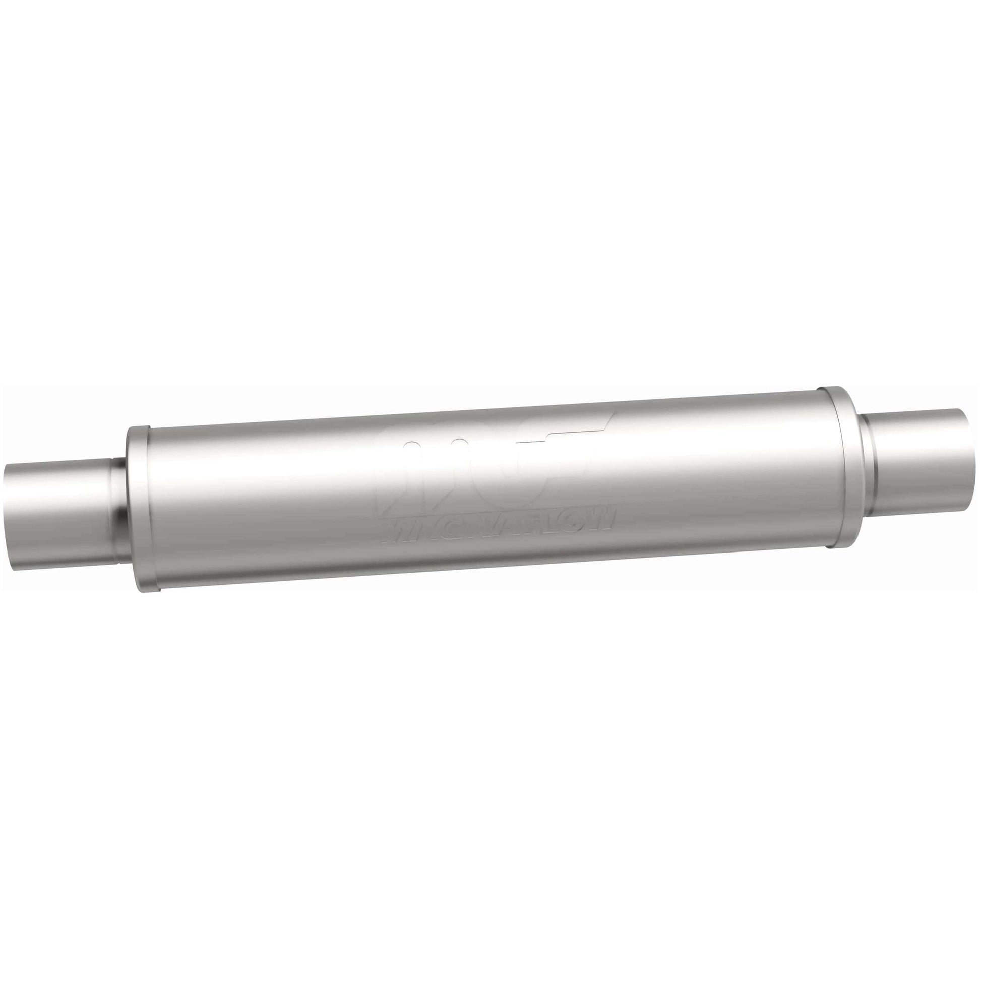 The MagnaFlow 4in. Round Straight-Through Performance Exhaust Muffler 10426 brings our world-famous exhaust sound and dyno-proven performance to your ride in a weight-optimized 4x4x18in. package with a premium satin finish. The straight-through free-flowing design of this round-bodied muffler's reversible, universal 2.5/2.5in. diameter inlet/outlet layout enables versatile installation options to match the spacing requirements of your vehicle. Due to the cutting and welding involved, professional installation is highly recommended. Internally, 10426 utilizes a perforated stainless steel core wrapped in stainless steel mesh and acoustic fiber fill to achieve a powerful, resonant tone. This muffler is made of durable, corrosion resistant stainless steel and produced using cutting-edge CNC precision robotic manufacturing techniques, all backed by MagnaFlow's limited lifetime construction warranty.