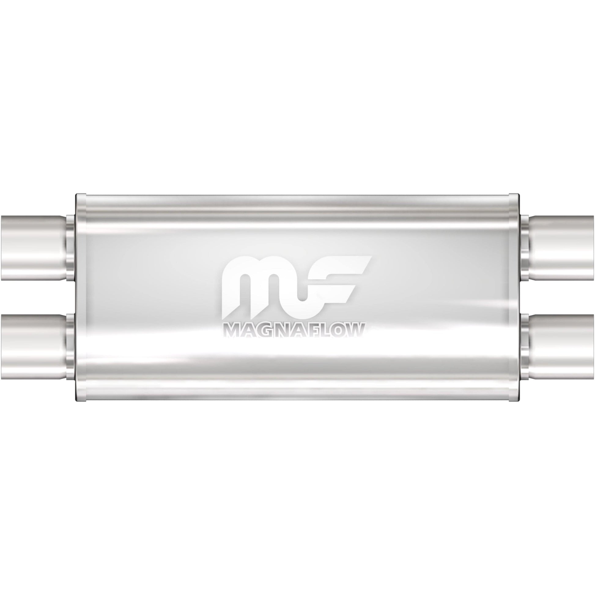 The MagnaFlow 5 X 8in. Oval Straight-Through Performance Exhaust Muffler 14468 brings our signature sound and dyno-proven performance to your ride with a free-flowing straight-through perforated stainless steel core wrapped in stainless steel mesh and acoustic fiber fill, and a weight-optimized, reversible 2.5/2.5in. diameter inlet/outlet Straight-Through layout. Muffler 14468s 5x8x18in. oval-shaped body features a premium, brushed finish for an elevated aesthetic that matches the enhanced exhaust note and performance that this muffler brings to your ride. The universal design allows for flexible placement of 14468 within your exhaust system to meet the specific spacing requirements of your vehicle, although professional installation is highly recommended. 14468 is made of durable, corrosion resistant stainless steel and produced using cutting-edge CNC precision robotic manufacturing techniques, all backed by MagnaFlow's limited lifetime construction warranty.