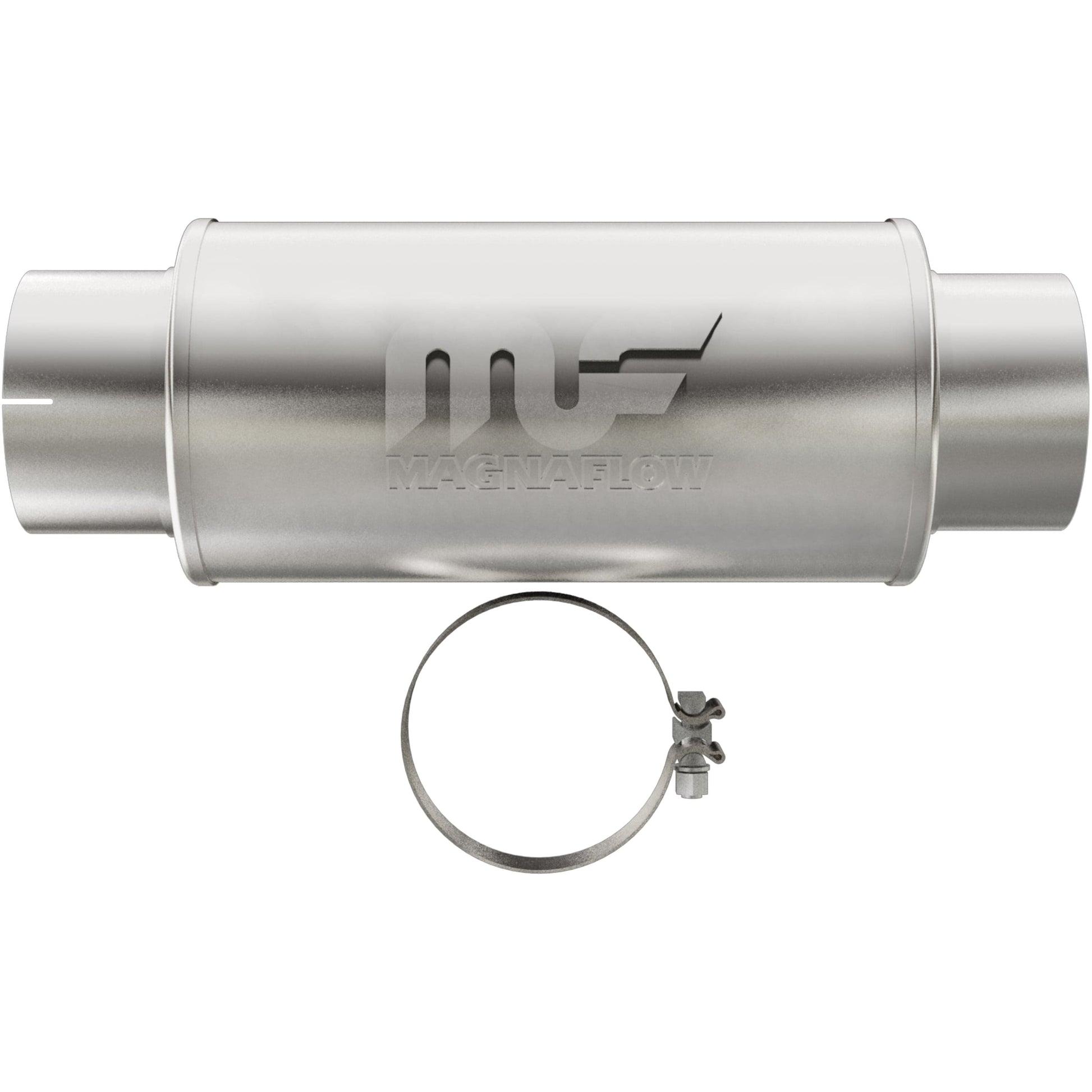 The MagnaFlow 7 X 7in. Round Straight-Through Performance Exhaust Muffler 12776 is engineered to enhance your ride with a healthy helping of our signature exhaust sound and dyno-proven performance thanks to its free-flowing straight-through perforated stainless steel core wrapped in stainless steel mesh and acoustic fiber fill. The reversible, universal 5/5in. diameter inlet/outlet Straight-Through layout allows you to install it in whatever orientation and configuration you see fit. However, professional installation is highly recommended. Muffler 12776s weight-optimized 7x7x14in. oval-shaped body features a satin finish that elevates the overall aesthetics of your current exhaust setup. 12776 is made of durable, corrosion resistant stainless steel and produced using cutting-edge CNC precision robotic manufacturing techniques, all backed by MagnaFlow's limited lifetime construction warranty.