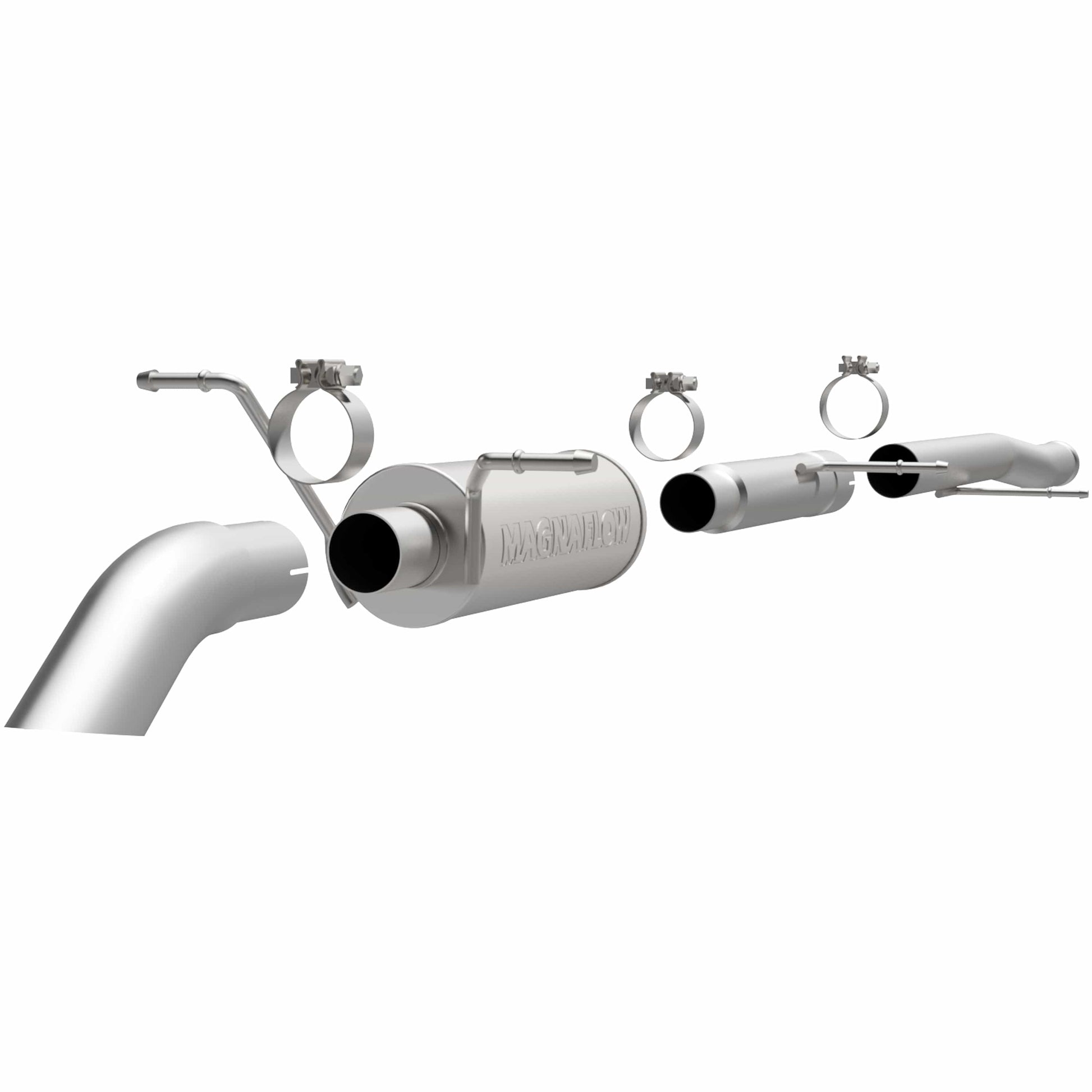 The MagnaFlow Off-Road Pro Series Cat-Back Performance Exhaust System 17102 brings additional off-roading prowess and our deep signature exhaust note to your Truck with a weight-optimized, dyno-tested, corrosion resistant and durable stainless steel design engineered to closely hug the undercarriage for improved ground clearance. Exhaust kit 17102 is engineered to produce Very Aggressive exterior and Aggressive interior sound levels. Extensive 3D scanning was used during the development of this Truck exhaust system to create a direct-fit design, enabling a do-it-yourself installation process. 17102's emissions-legal cat-back design replaces all your truck's exhaust components from the catalytic converter on back with its 3in. diameter mandrel bent main piping that passes through 1 Straight-Through mufflers before ending in a turndown before rear axle exit with 3in. Satin Clamp-On Single Wall Turndown Cut Edge tips. Exhaust system 17102 is produced using advanced CNC precision robotic manufacturing techniques and backed by MagnaFlow's limited lifetime warranty.
