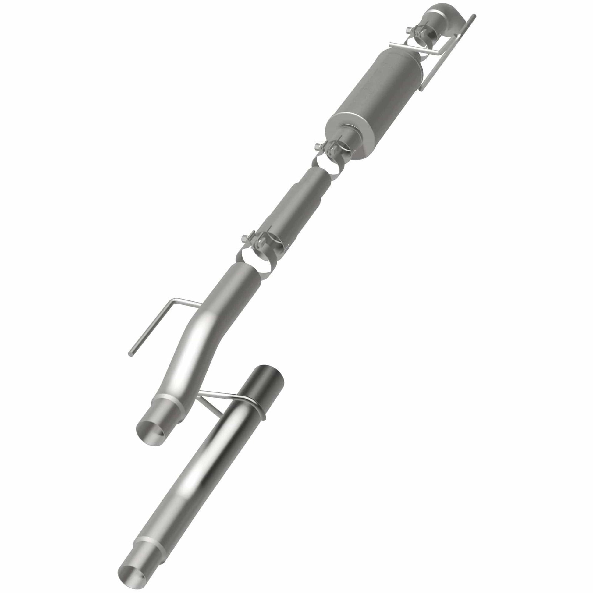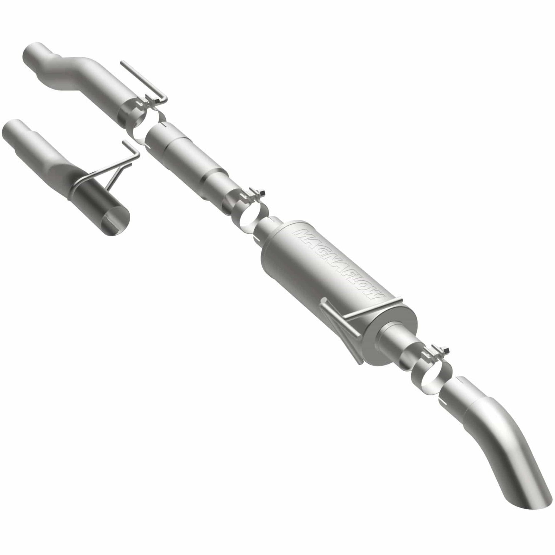 The MagnaFlow Off-Road Pro Series Cat-Back Performance Exhaust System 17107 brings additional off-roading prowess and our deep signature exhaust note to your Truck with a weight-optimized, dyno-tested, corrosion resistant and durable stainless steel design engineered to closely hug the undercarriage for improved ground clearance. Exhaust kit 17107 is engineered to produce Very Aggressive exterior and Aggressive interior sound levels. Extensive 3D scanning was used during the development of this Truck exhaust system to create a direct-fit design, enabling a do-it-yourself installation process. 17107's emissions-legal cat-back design replaces all your truck's exhaust components from the catalytic converter on back with its 3in. diameter mandrel bent main piping that passes through 1 Straight-Through mufflers before ending in a turndown before rear axle exit with 3in. Satin Clamp-On Single Wall Turndown Cut Edge tips. Exhaust system 17107 is produced using advanced CNC precision robotic manufacturing techniques and backed by MagnaFlow's limited lifetime warranty.