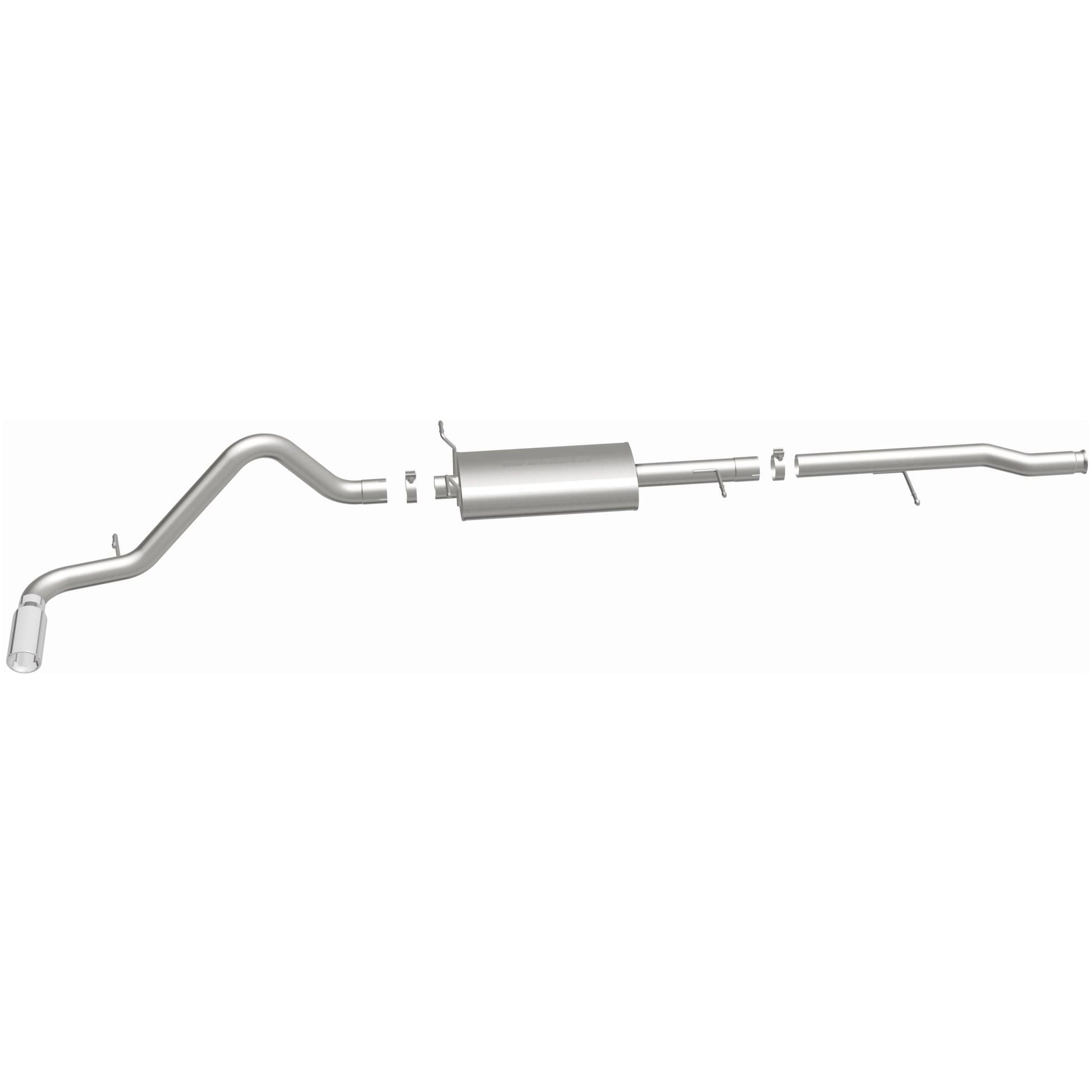 The MagnaFlow Street Series Cat-Back Performance Exhaust System 15564 brings out the personality of your Truck with our signature resonant, powerful engine tone and dyno-proven performance. Thanks to its fast-flowing, mandrel bent 3in. main piping and 1 Straight-Through mufflers ending in a Single Passenger Side Rear exit with 4in. Polished Welded-On Double Wall Angle Cut Rolled Edge tips, this Truck exhaust kit has the performance chops to match its sporty sound and appearance. Upgrade your ride to the next level with an exhaust that has the pipes to put other Truck's to shame. With this system your vehicle will be producing Moderate exterior and Mild interior sound levels while leaving other cars and trucks feeling envious at every stoplight. Exhaust kit 15564 features a cat-back layout that replaces your ride's stock exhaust components from near the catalytic converter on back. Extensive 3D scanning during development has resulted in a direct-fit design that you can easily install yourself. 15564 is produced using CNC precision robotic manufacturing techniques and is backed by MagnaFlow's 1-year limited finish warranty and limited lifetime construction warranty.